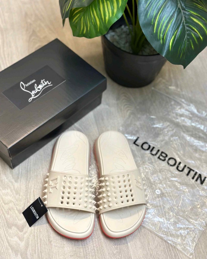 Christian Loubouti.n Take It Easy Beige Red Premium Slides