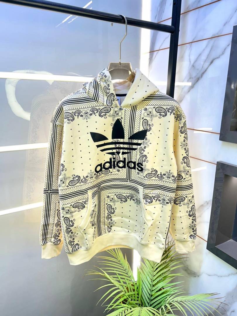 Adida s Imported Allover Print Cream Super Premium Hoodie F3311-CR