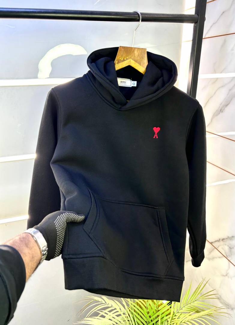 Ami Logo Imported Black Super Premium Hoodie F3171-BL