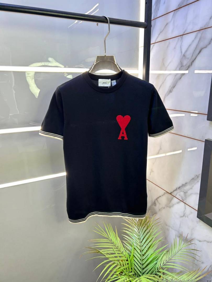Ami Logo Imported knitted Polo Super Premium Black Round Neck T-shirt F3478-BL
