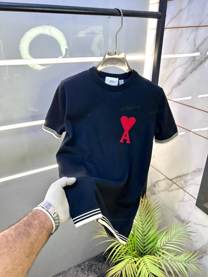 Ami Logo Imported knitted Polo Super Premium Navy Round Neck T-shirt F3478-NY