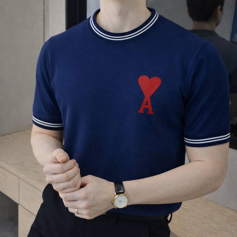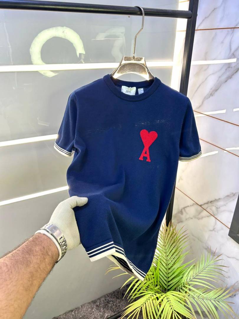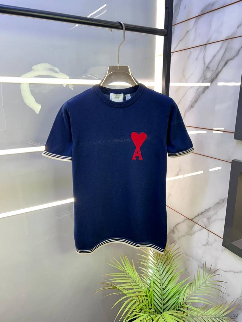 Ami Logo Imported knitted Polo Super Premium Navy Round Neck T-shirt F3478-NY