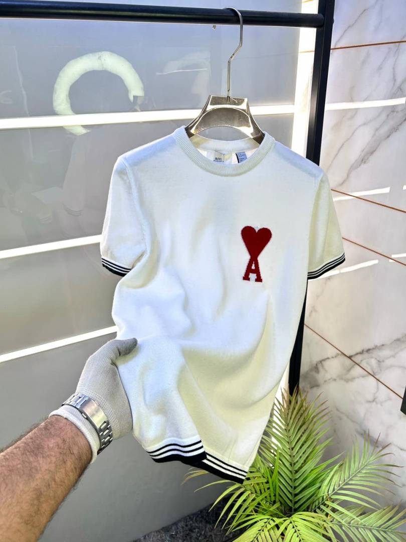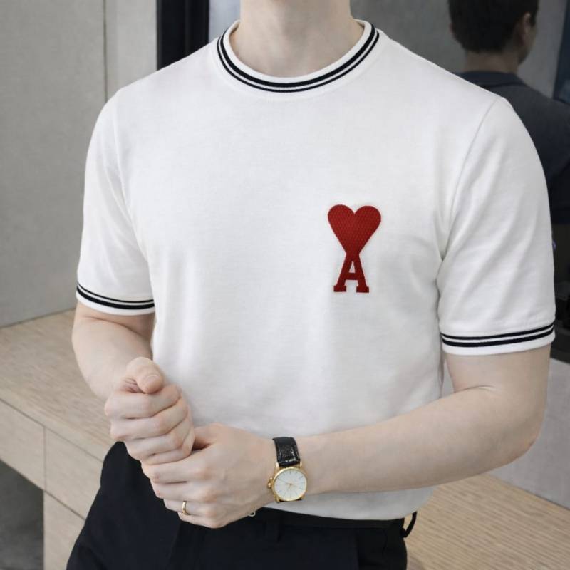 Ami Logo Imported knitted Polo Super Premium White Round Neck T-shirt F3478-WH