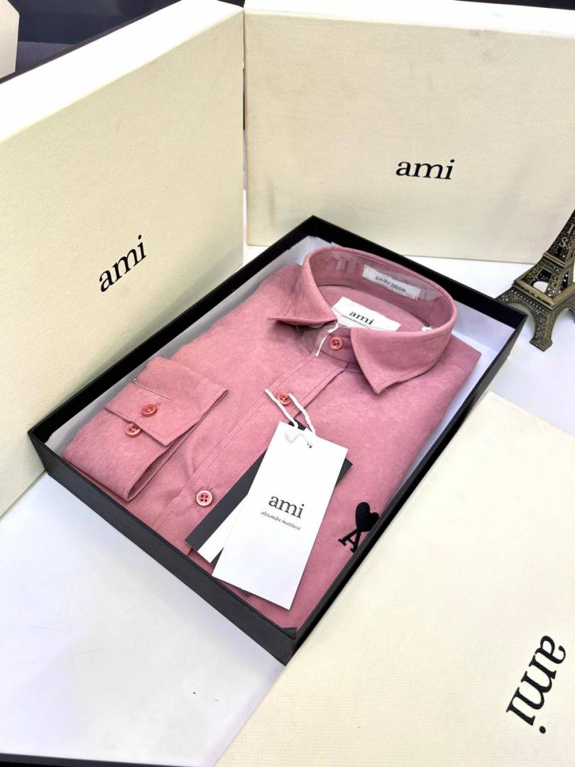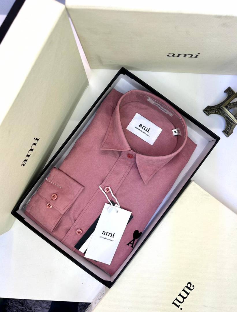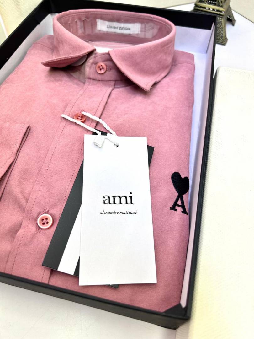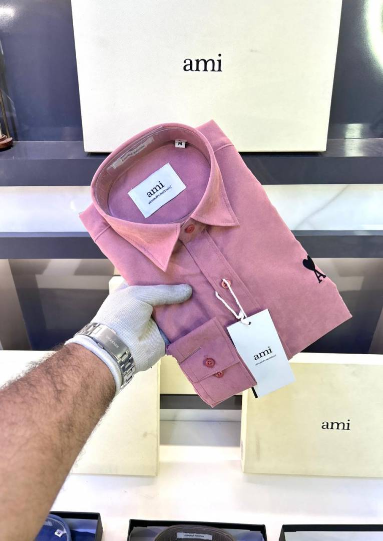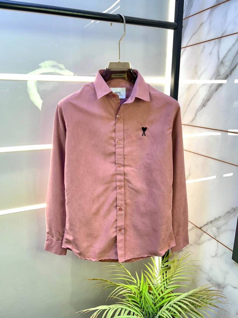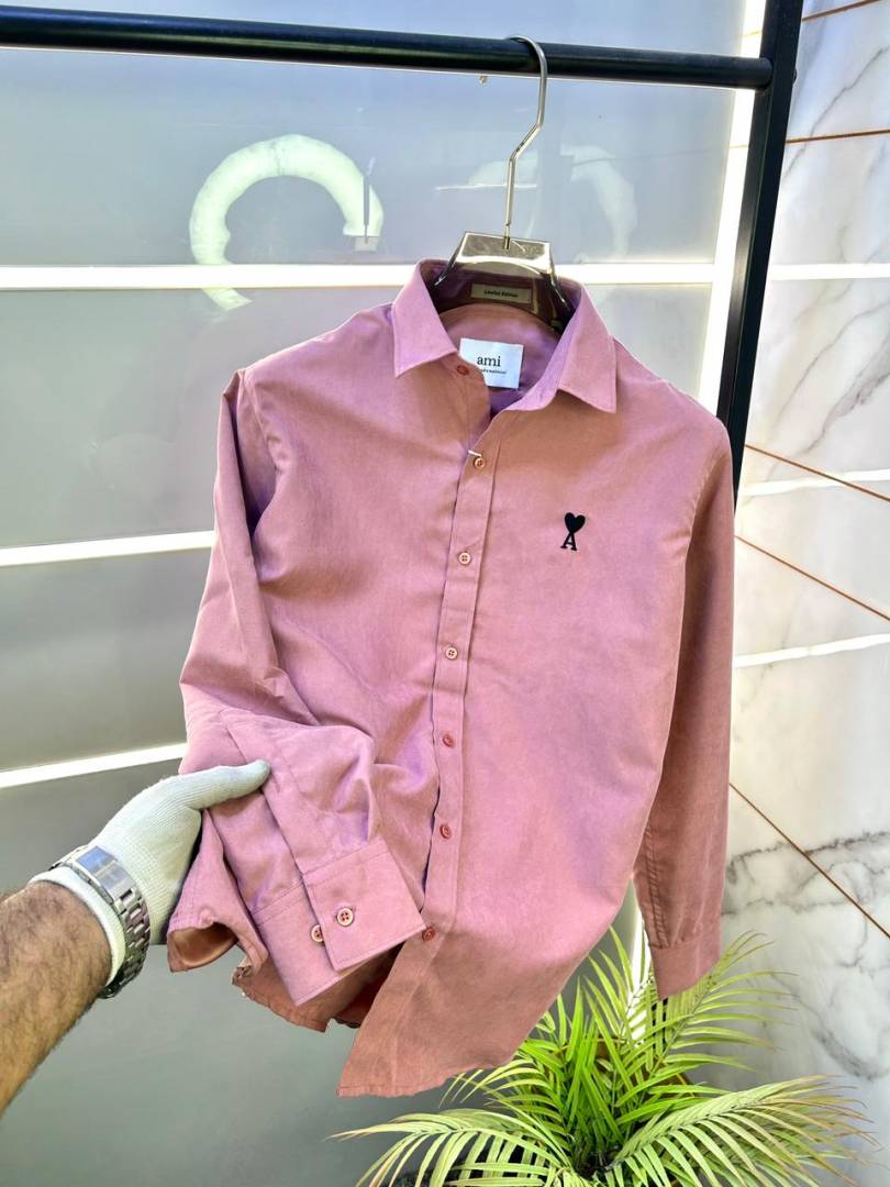 Ami Logo Pink Premium Shirt With Brand Box Packing F3203-PI