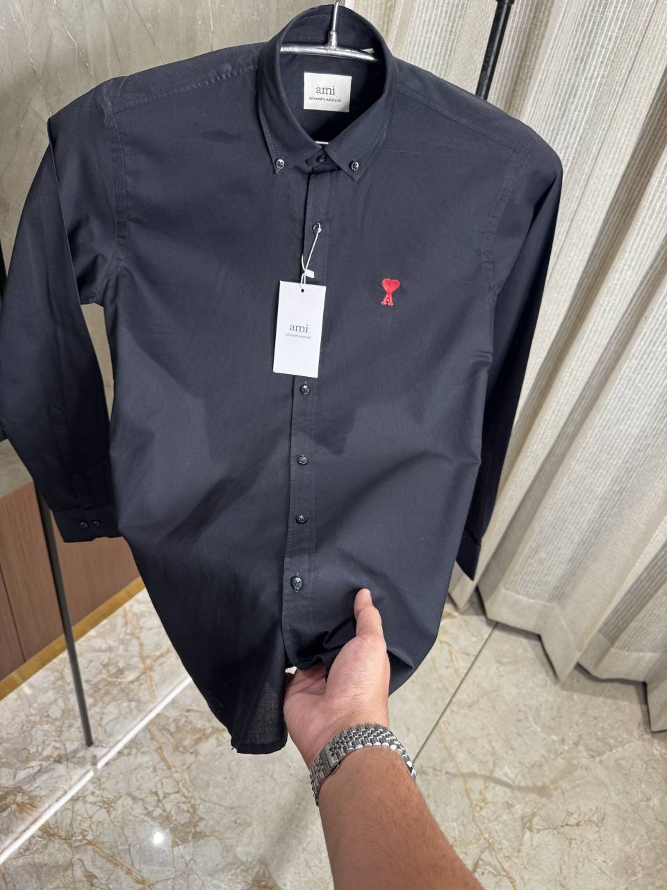 Ami Paris Black colour Premium Oxford cotton shirt