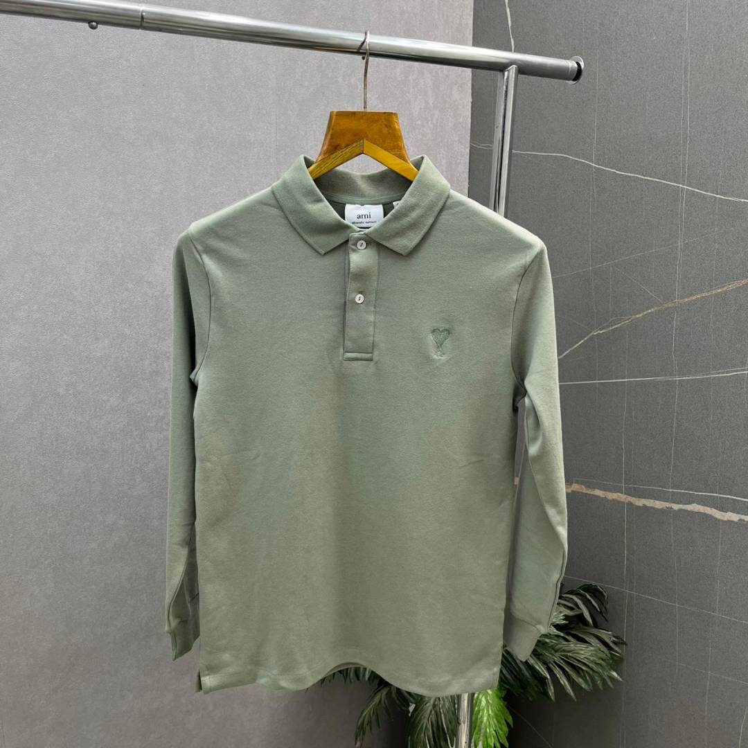Ami Paris Green Premium Polo Full Sleeves Tshirt 492