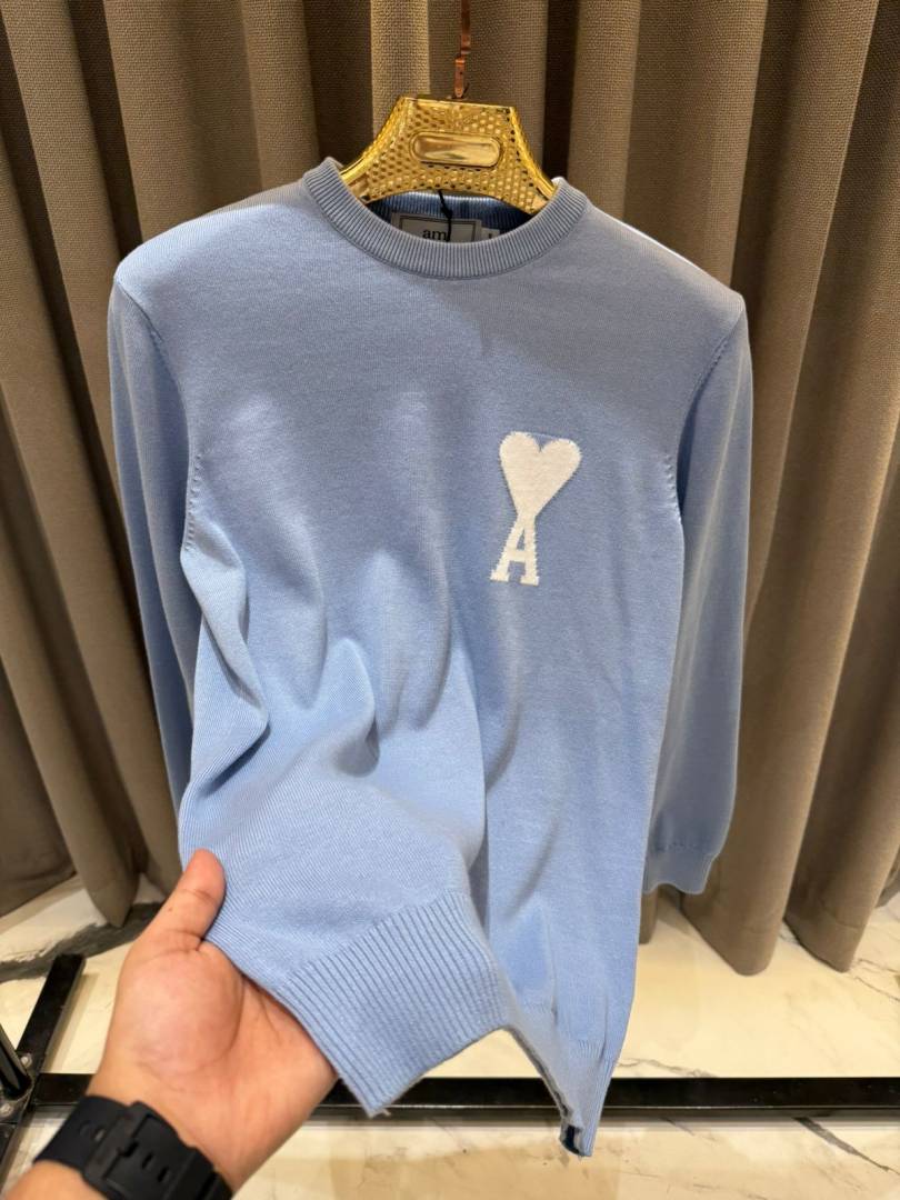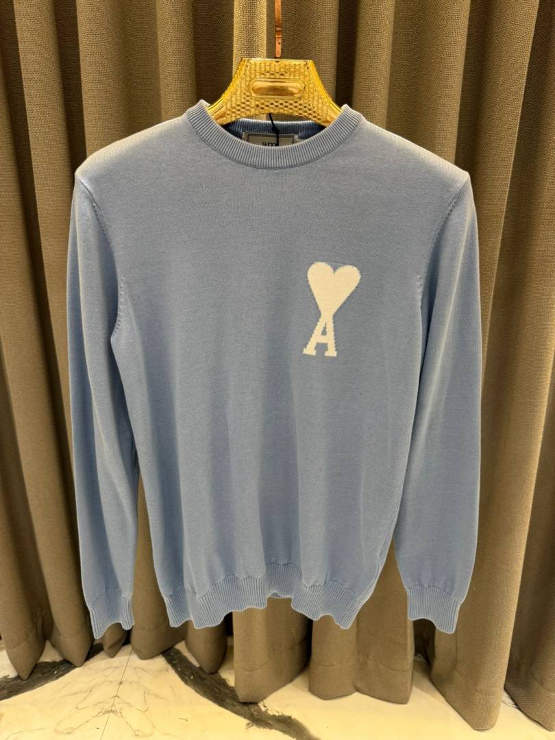 Ami Paris Mid Blue Embroidery Logo Premium Denim Shirt