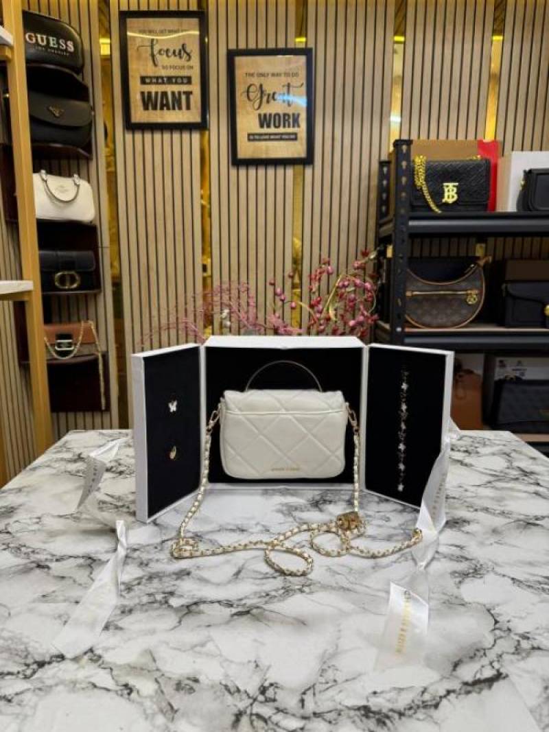 Charle_s & Keith Boxy Quilted Top Handle Bag Gift Set Slightly Damage Black Box (White) (V-CK17)