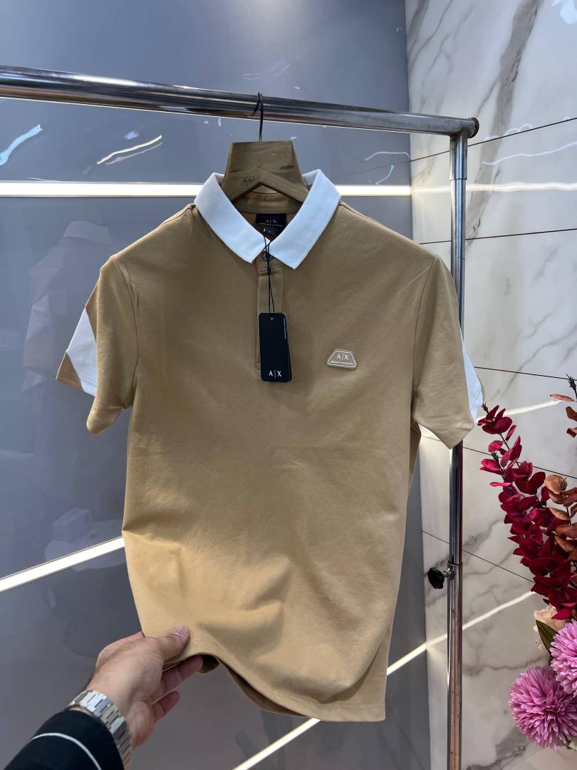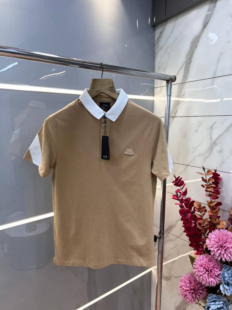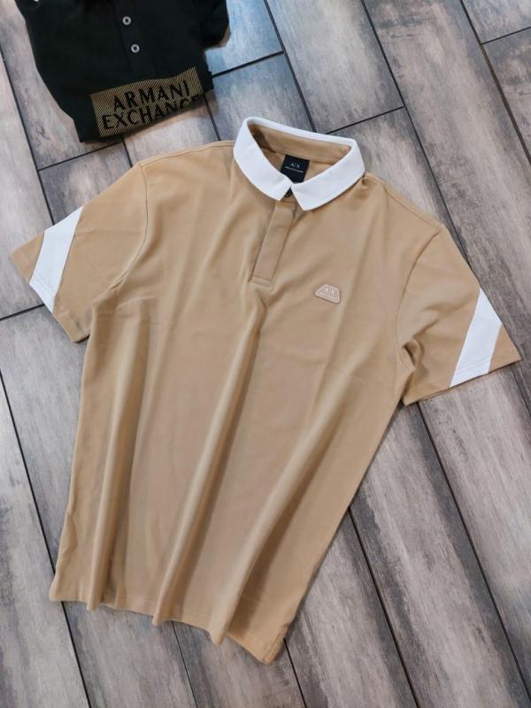 Arman i Exchange Beige Premium Cotton Lycra Pique fabric Polo Tshirt with Sleeves Design and Patch Logo 3113