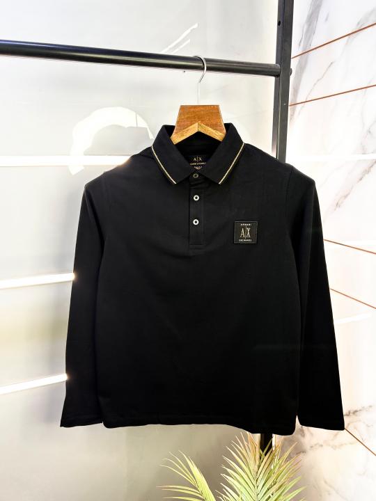 Arman_i Exchange Black Full Sleeves Polo Neck Premium Collar T-shirt F2050-BL