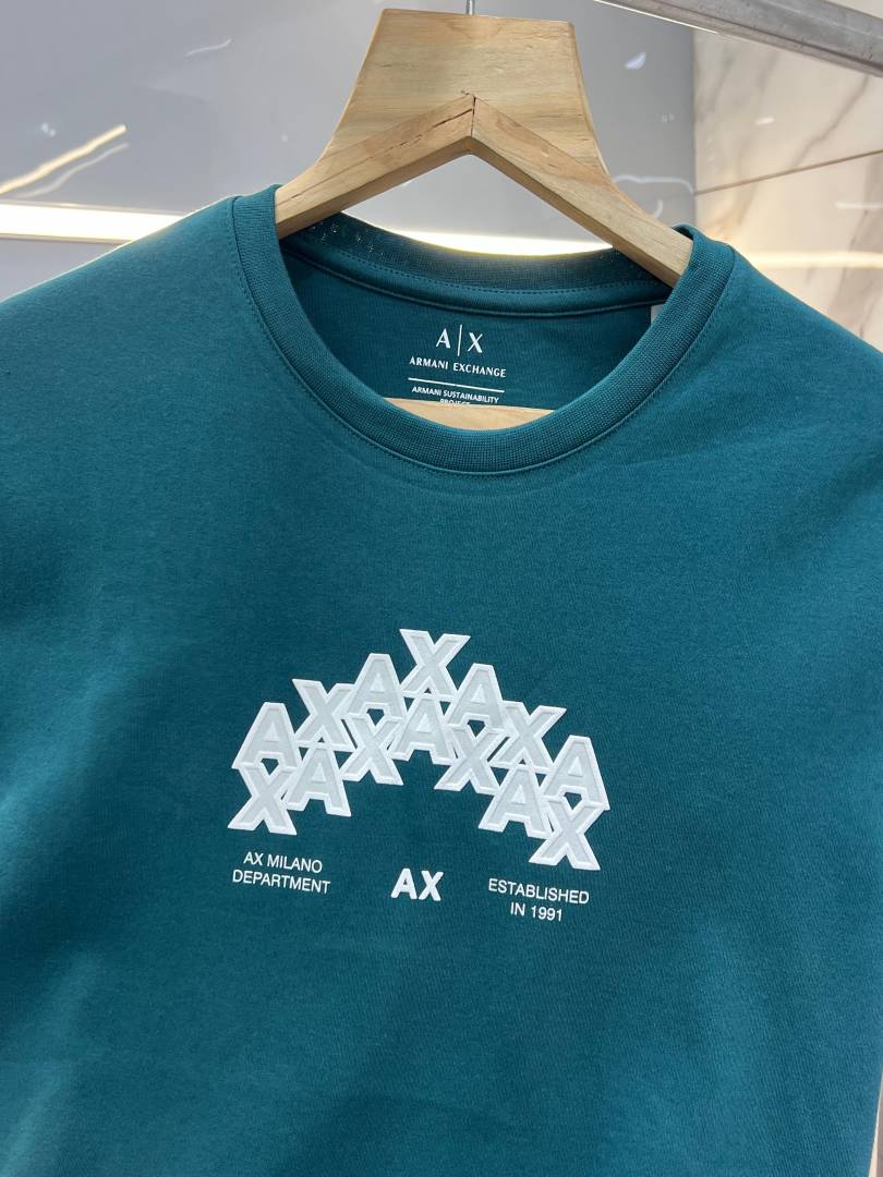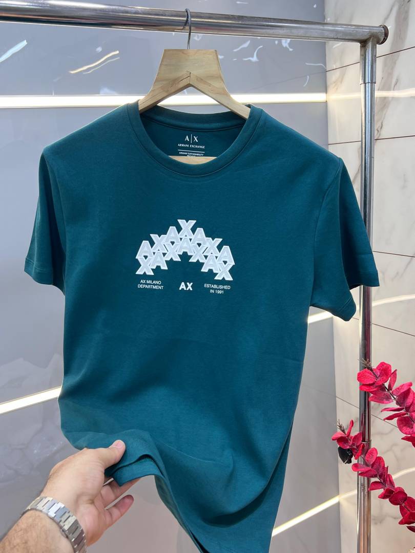 Arman i Exchange Green Premium Imported 240 GSM Interlock Fabric Round Neck Printed Logo Tshirt 3324