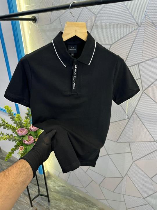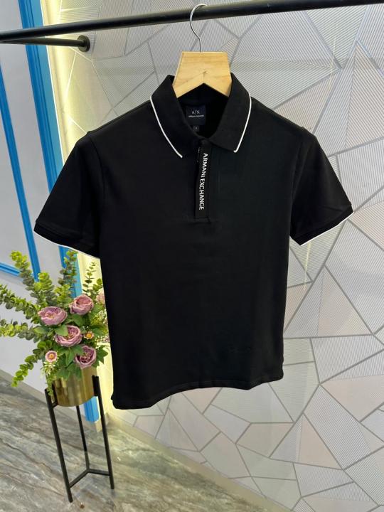 Arman i Exchange Black Premium Cotton Lycra Pique fabric Polo Tshirt with Collar and Front Design Zip Style 3116