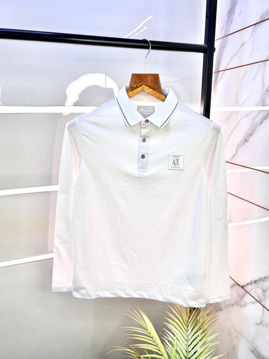 Arman_i Exchange White Full Sleeves Polo Neck Premium Collar T-shirt F2050-WH
