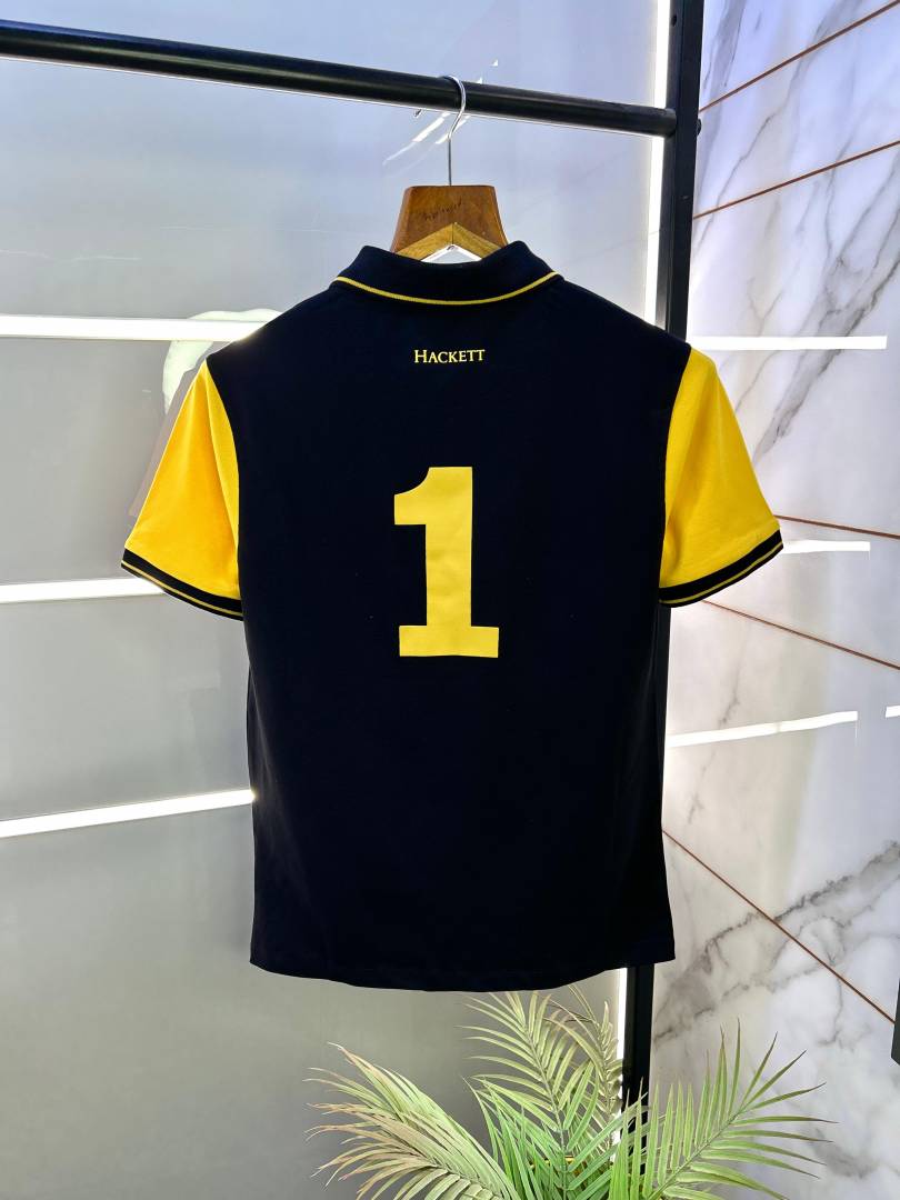 Aston Martin Hacket t Black Polo Back Print Premium Collar Neck T-shirt F2899-BL