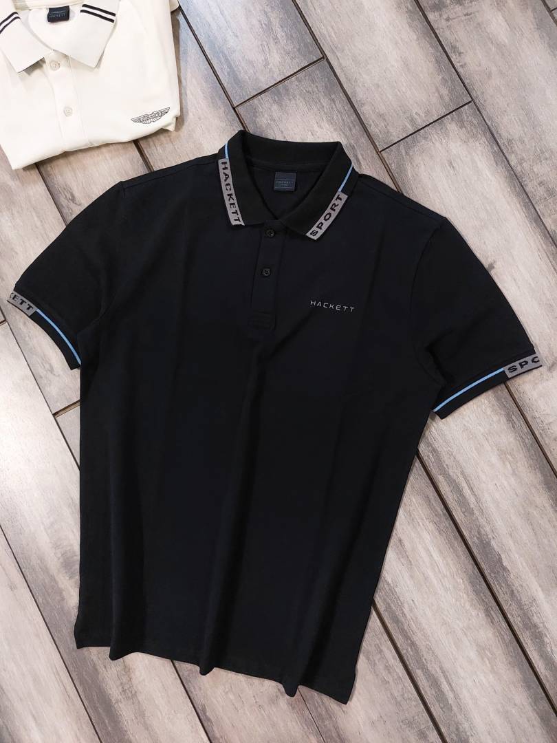 Aston Martin Hacket t Black Polo Premium Collar Neck T-shirt F3502-B1