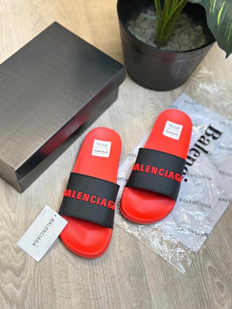 Balenciaga Logo Embossed Pool Red Black Slides