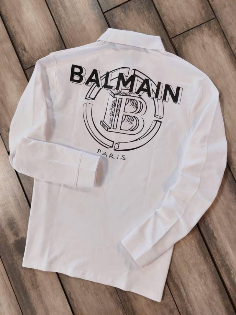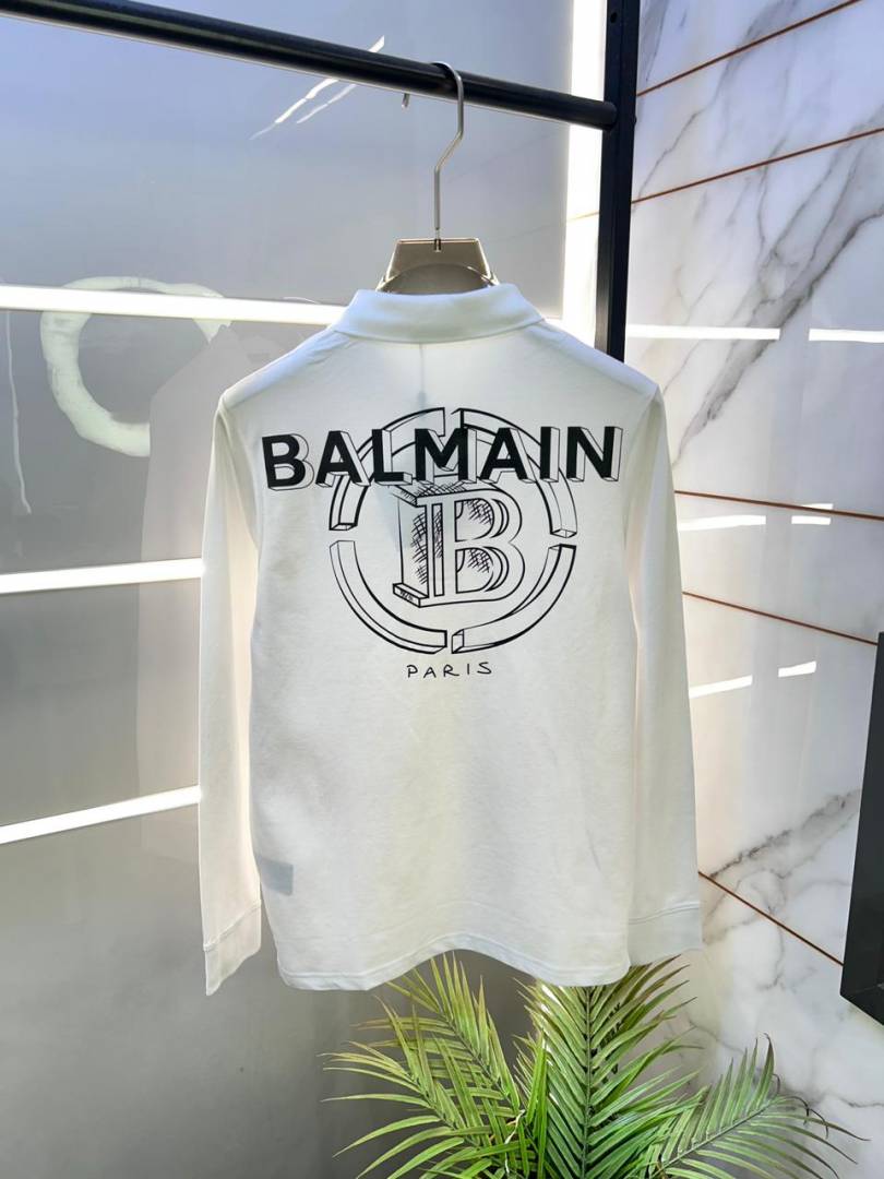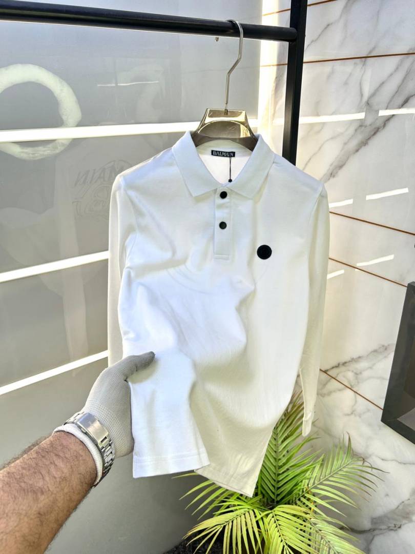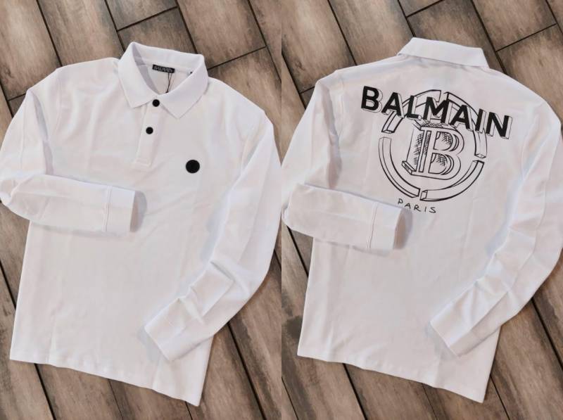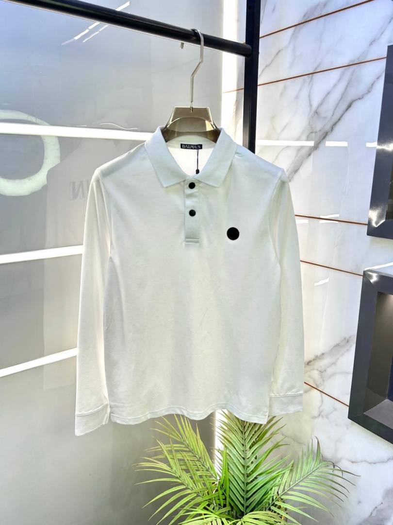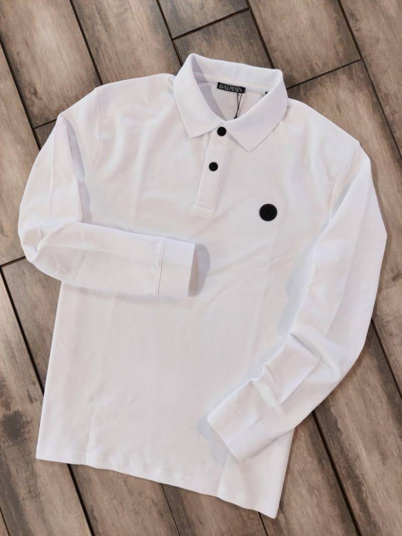 Balmai n Paris Back Print White Polo Neck Full Sleeves Premium Collar T-shirt F3454-W4