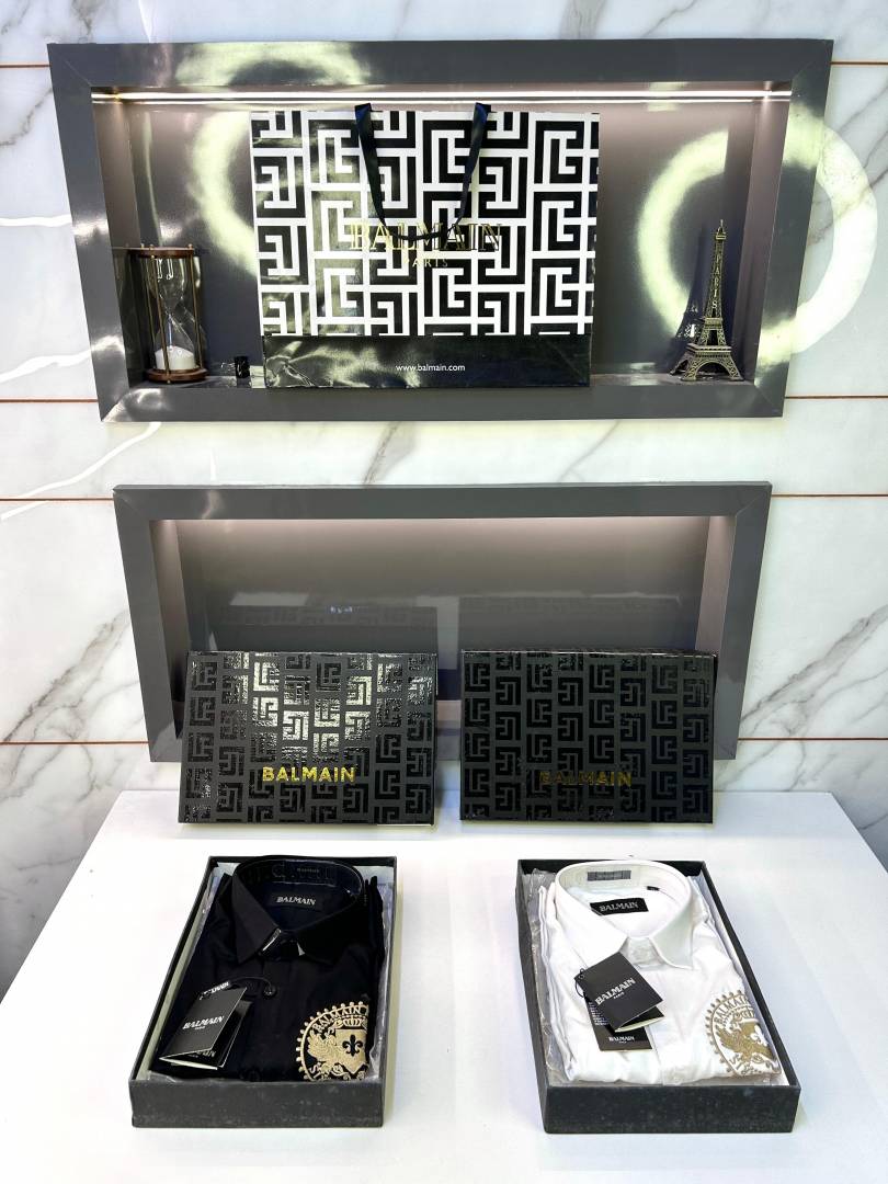 Balmai n Paris Embroidery Logo Black Premium Shirt With Brand Box Packing And Carry Bag F1453-BL
