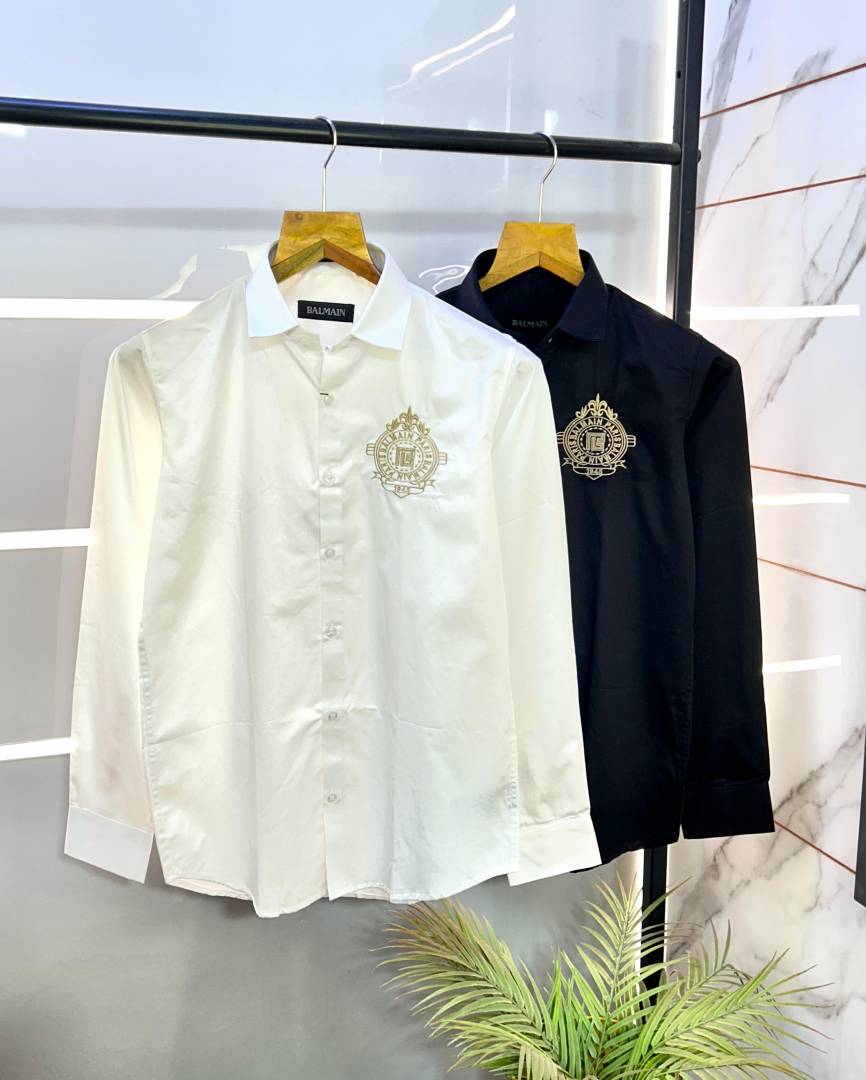 Balmai n Paris Embroidery Logo White Premium Shirt With Brand Box Packing And Carry Bag F1453-WH