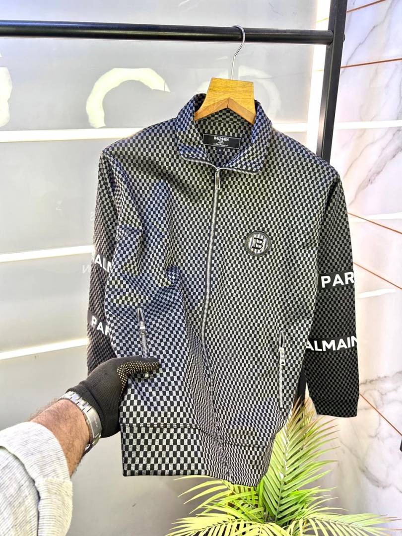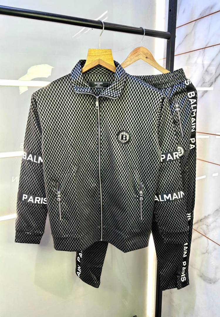 Balmai n Paris Imported Embossed Print Grey Super Premium Track Suit With Brand Carry Bag F2877-GY