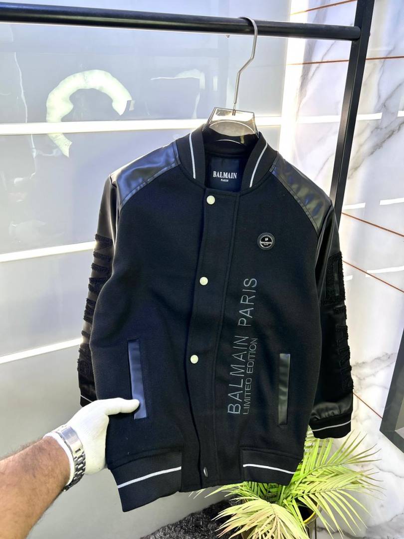 Balmai n Paris Logo Imported Printed Super Premium Black Varsity Jackets F2025-BL