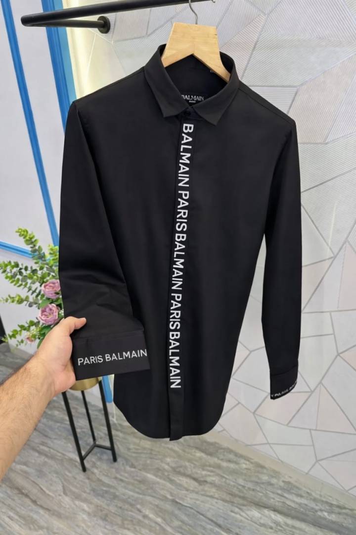 Balmai-n paris premium reflective print black colour shirt (With Brand Carry Bag Only)