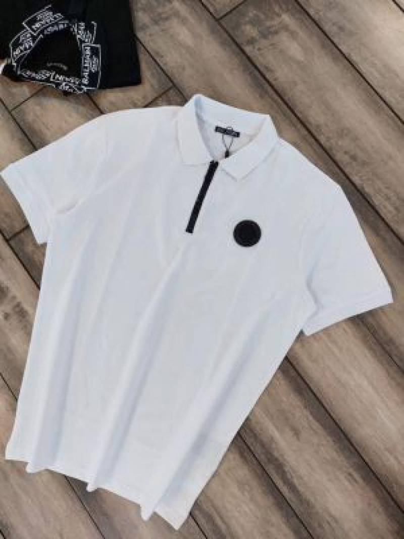 Balmai n Paris White Premium Imported Pique Polo Tshirt with Collar Design And Metal Logo 2719