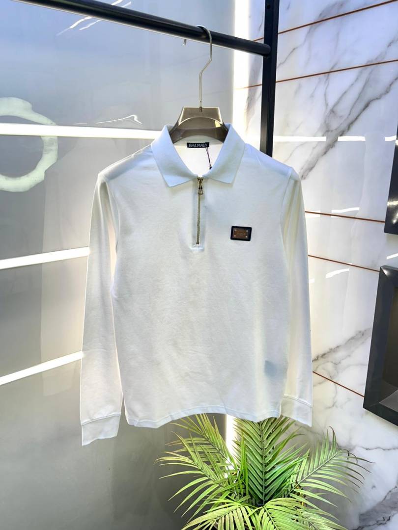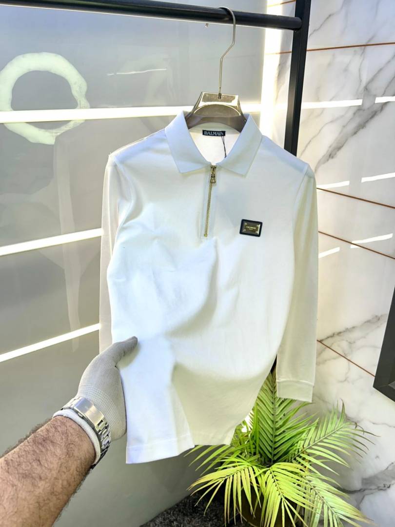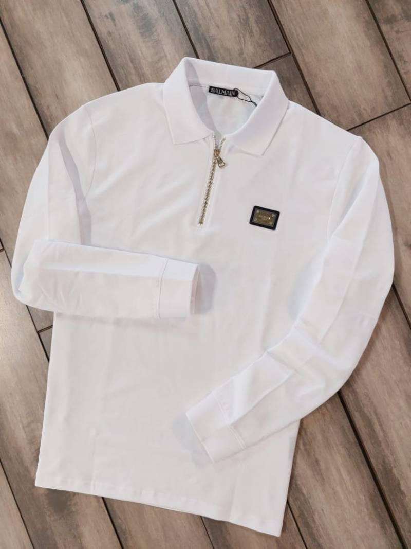 Balmai n Paris Zipper White Polo Neck Full Sleeves Premium Collar T-shirt F3454-W1