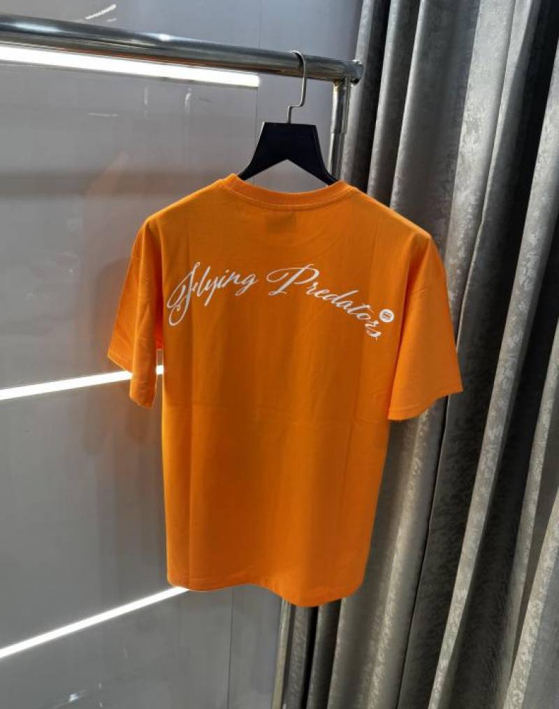 Bluorang Orange Eagle Embossed Print Imported Oversized T-Shirt