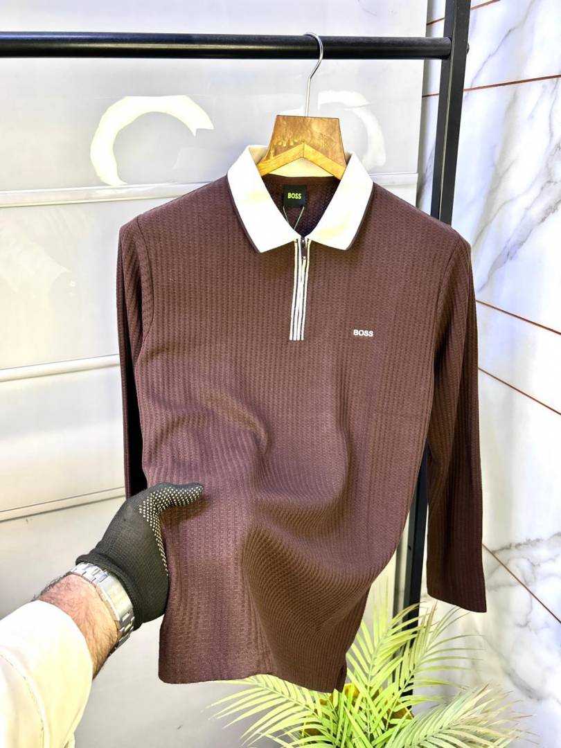 Boss Dark Brown Knitted Full Sleeves Premium Collar T-shirt F3111-DBR