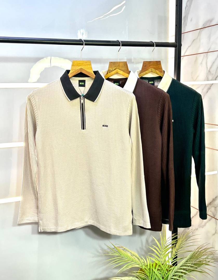 Boss Beige Knitted Full Sleeves Premium Collar T-shirt F3111-BE