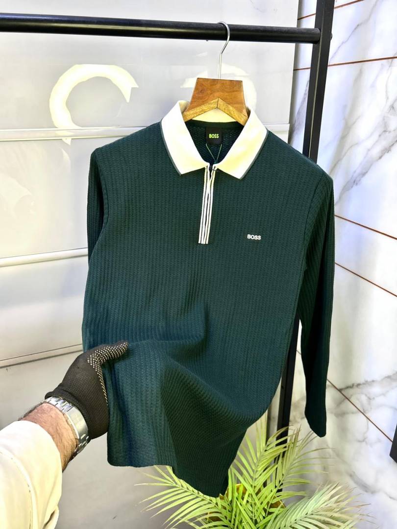 Boss Dark Green Knitted Full Sleeves Premium Collar T-shirt F3111-DGR