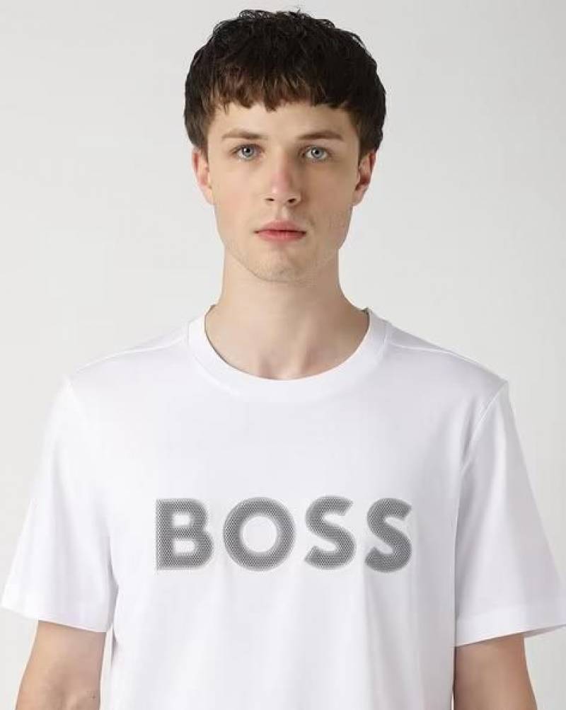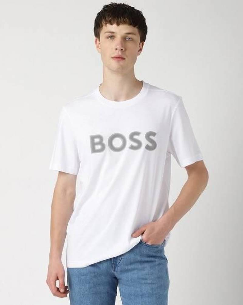 Boss White Embossed Print Premium Round Neck Polo T-shirt F3423-WH