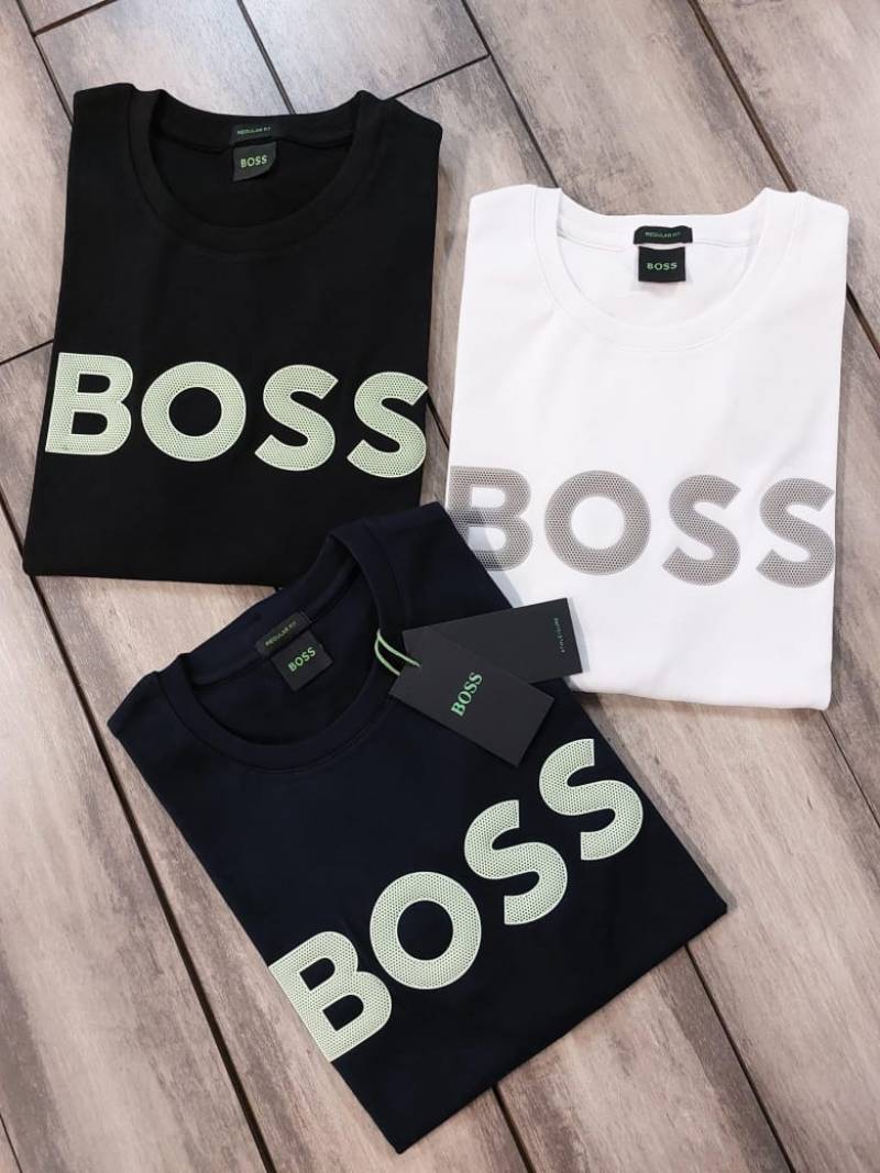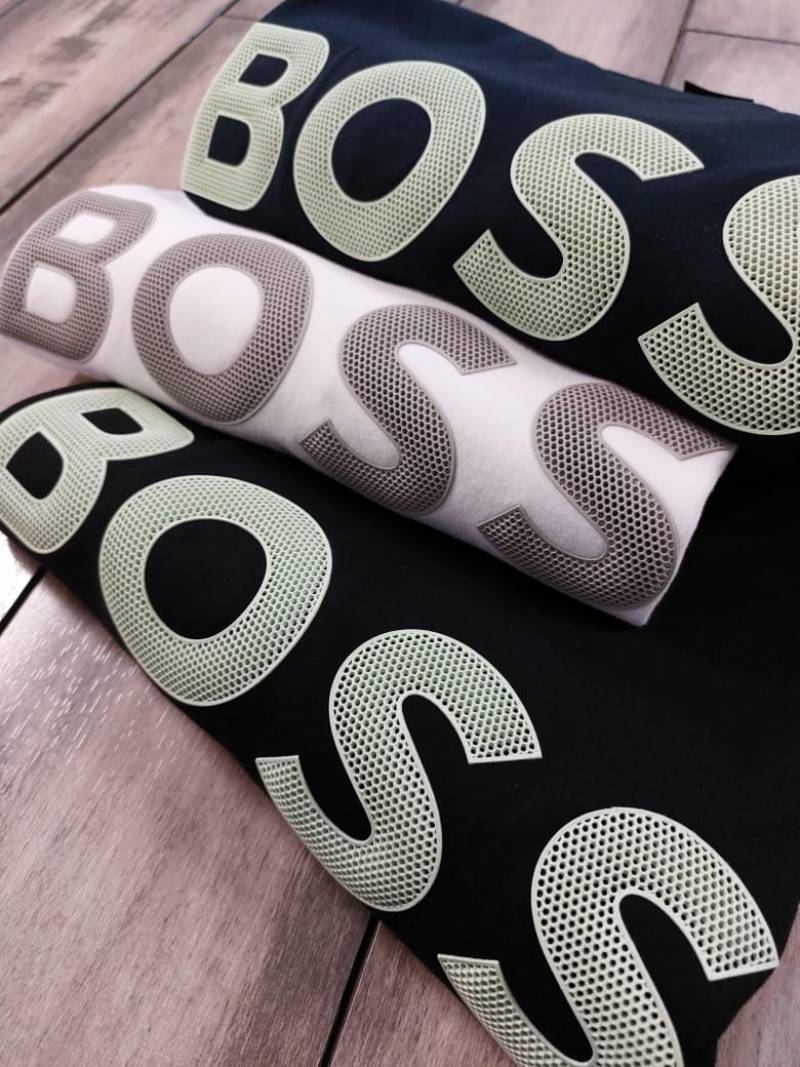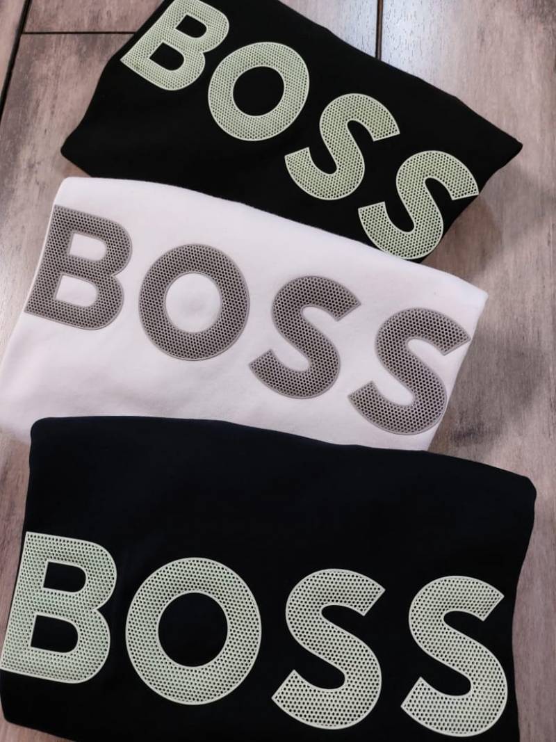 Boss Black Embossed Print Premium Round Neck Polo T-shirt F3423-BL