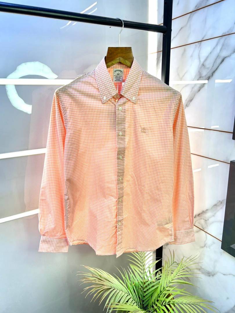 Brooks Brothers Orange Micro Checks Oxford Lycra Premium Shirts F2934-OR