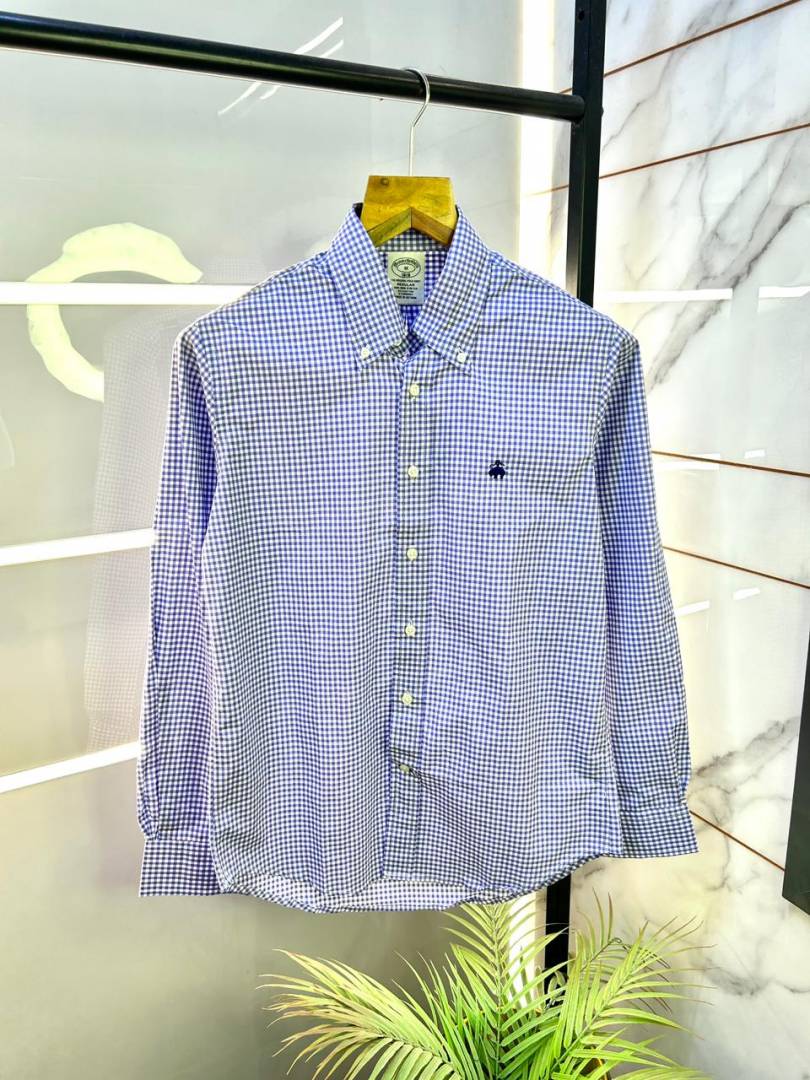 Brooks Brothers Grey Micro Checks Oxford Lycra Premium Shirts F2934-GY