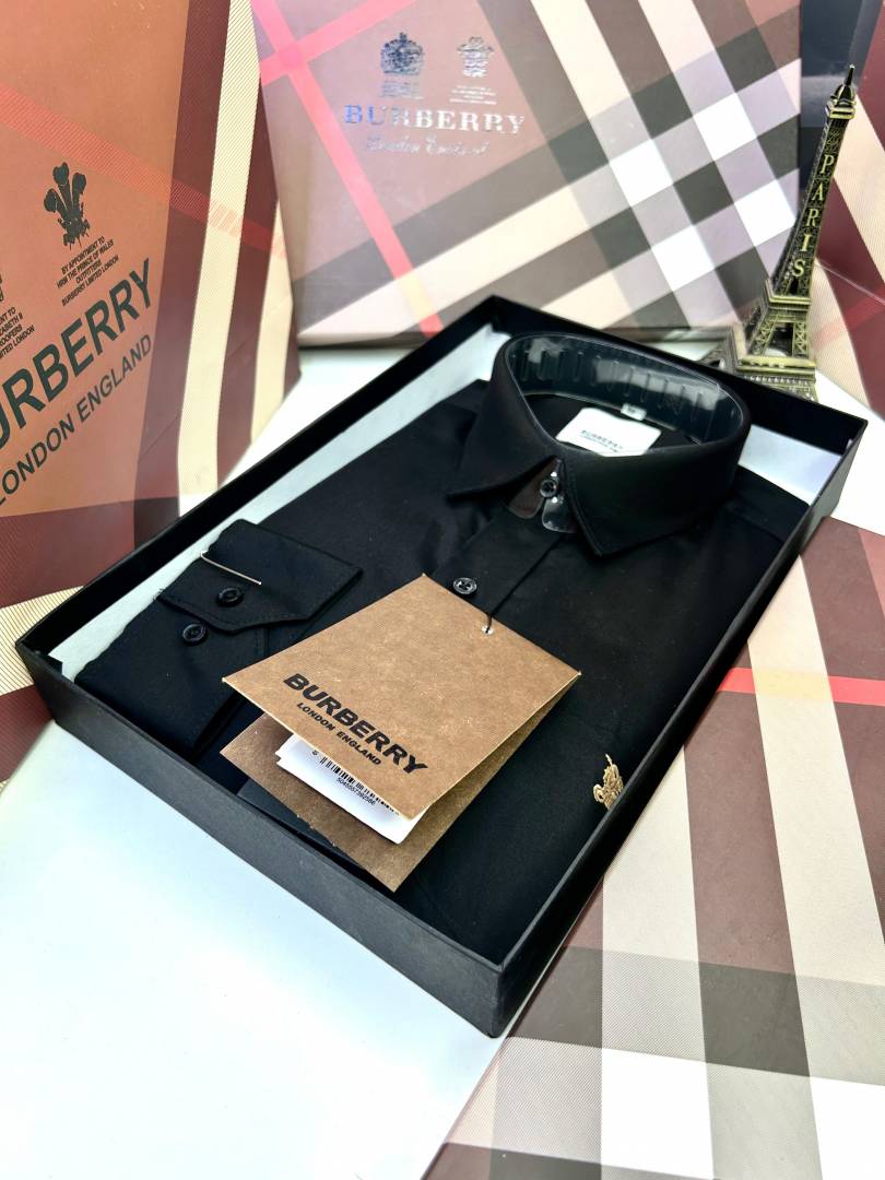 Burberr y Black Embroidery Logo Premium Shirt With Brand Box Packing and carry bag F2713-BL