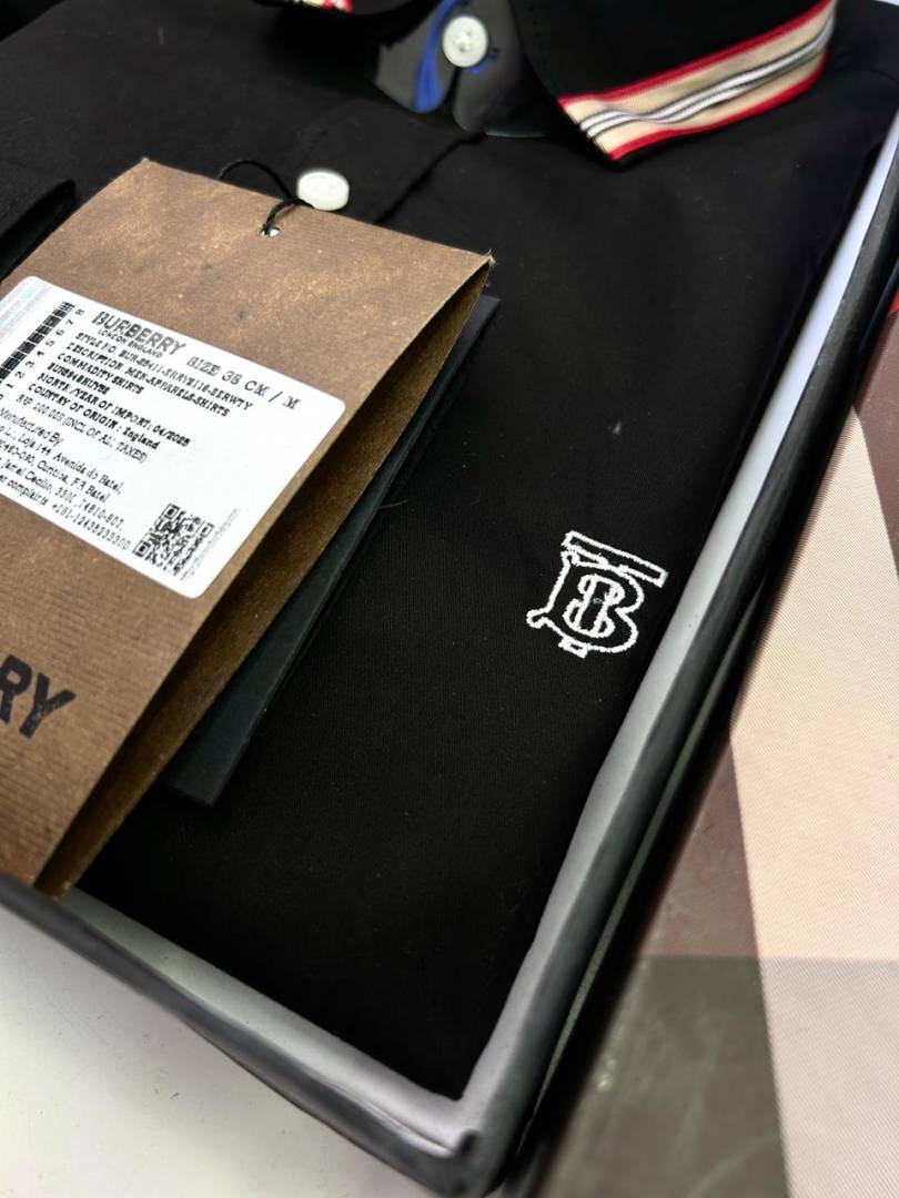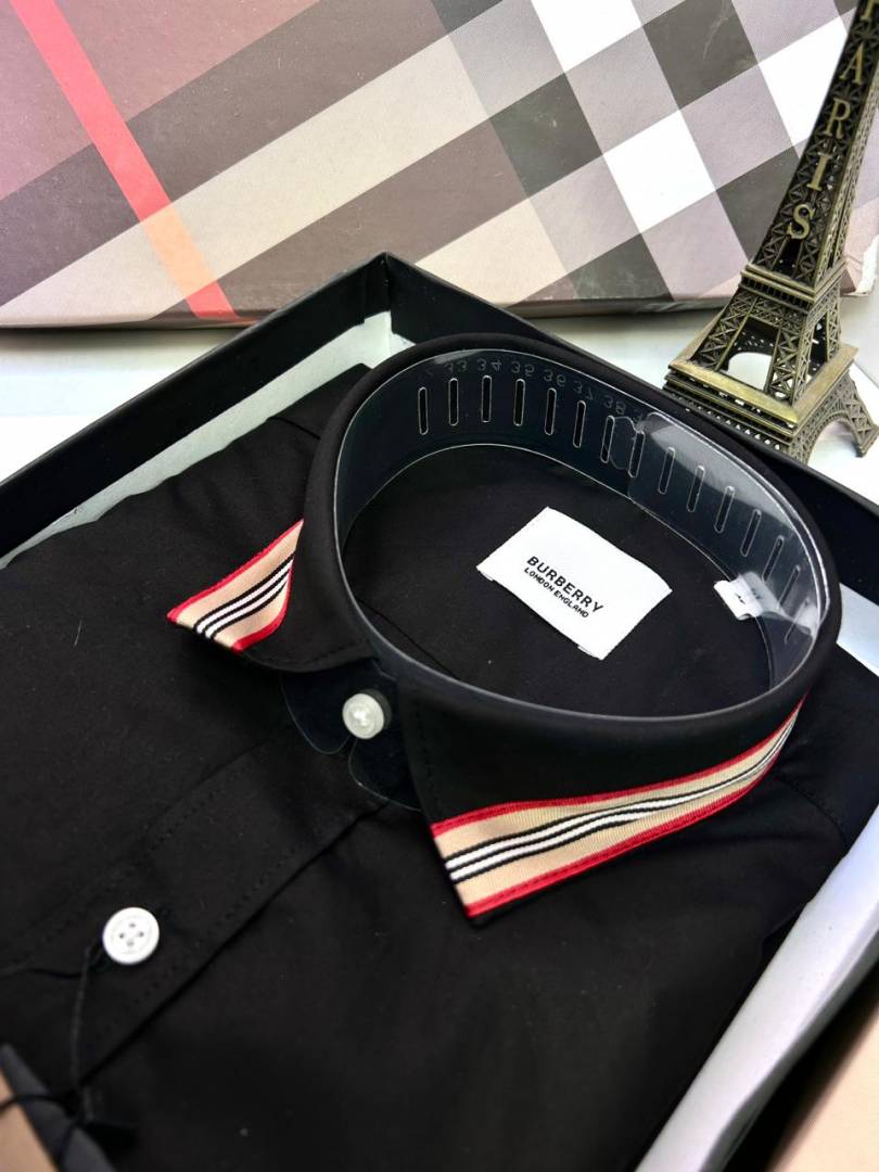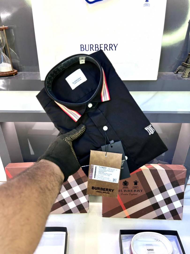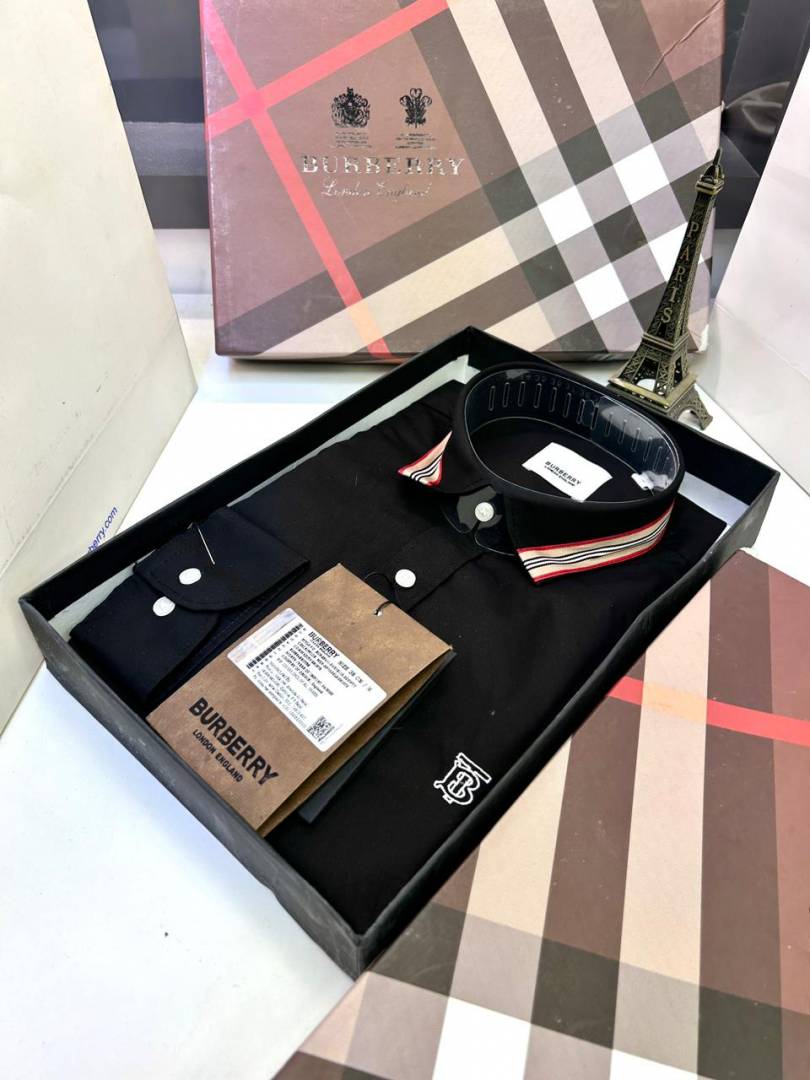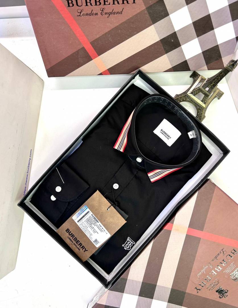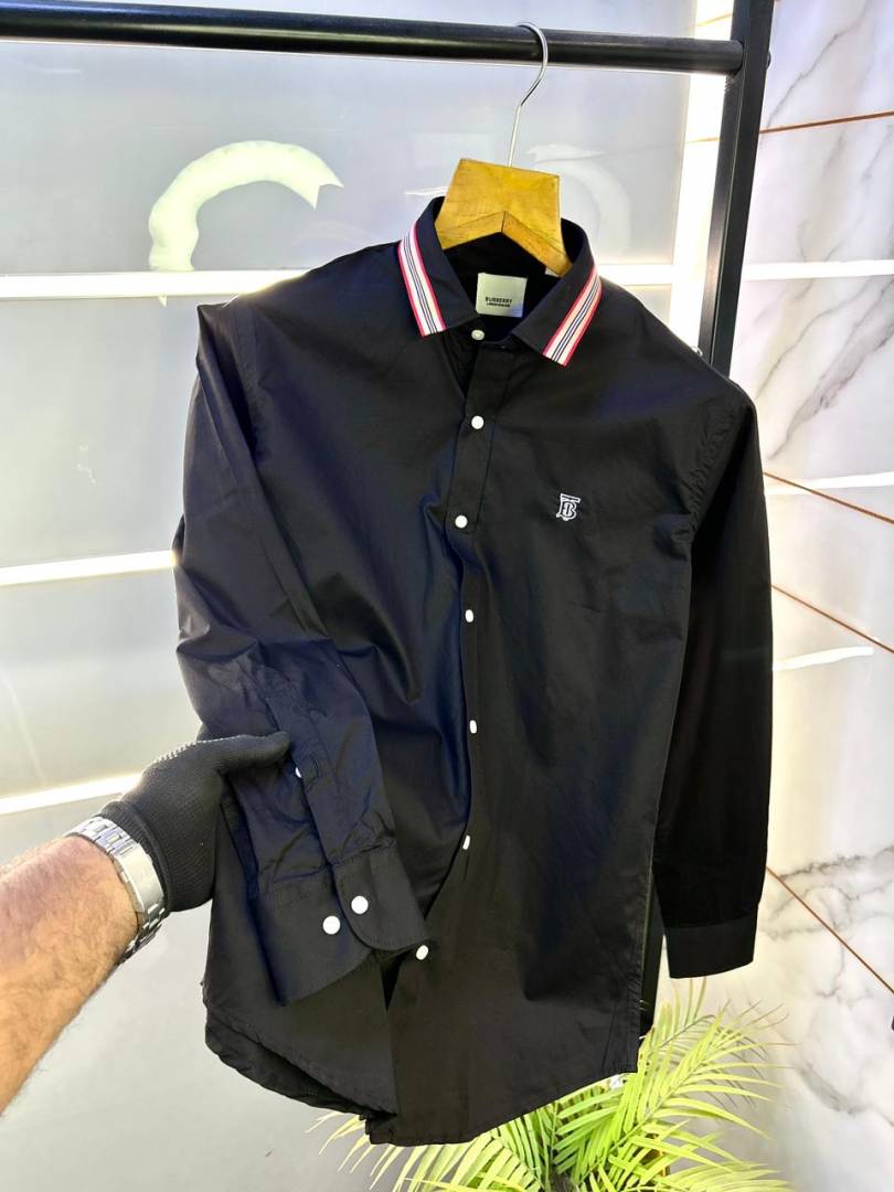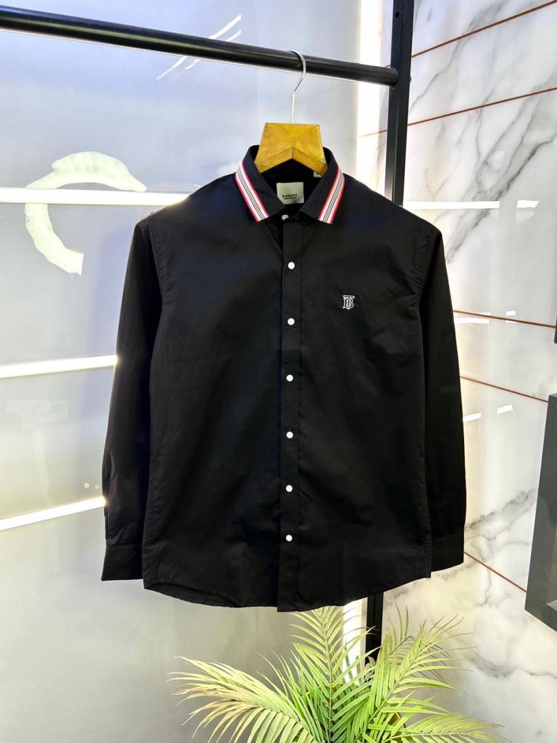 Burberr y Black Embroidery Logo Premium Shirt With Brand Box Packing and carry bag F2741-BL