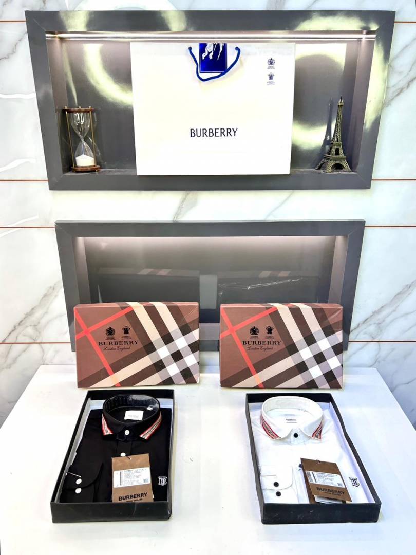 Burberr y White Embroidery Logo Premium Shirt With Brand Box Packing and carry bag F2741-WH