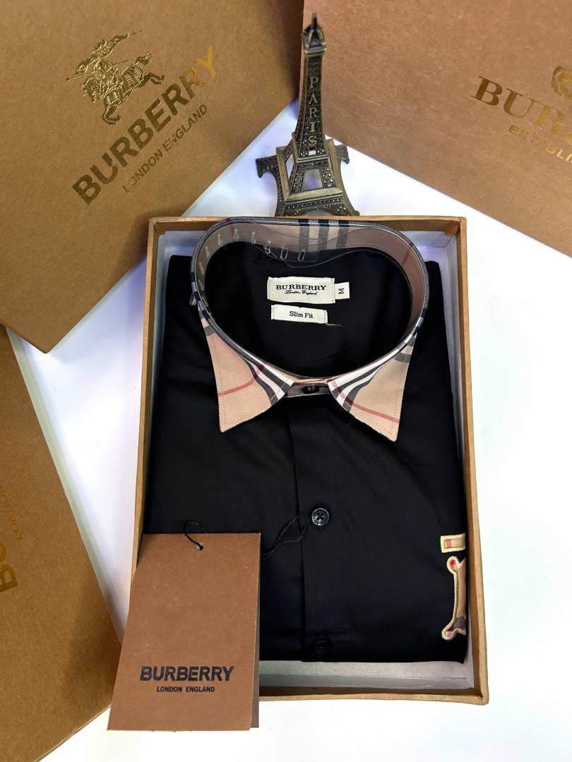 Burberr y Black Premium Embroidery Logo Shirt With Brand Box Packing And Carry Bag F2249-BL
