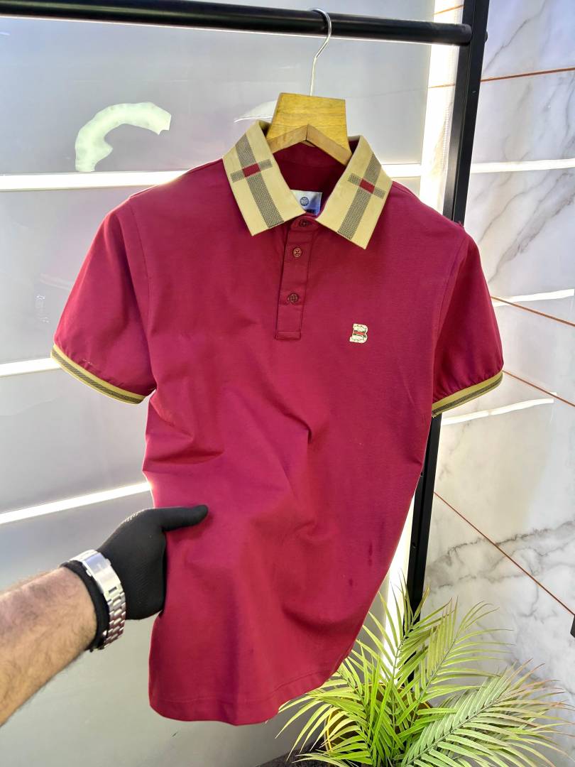 Burberr y Logo Red Collar Neck Premium Polo T-shirt F2593-RE