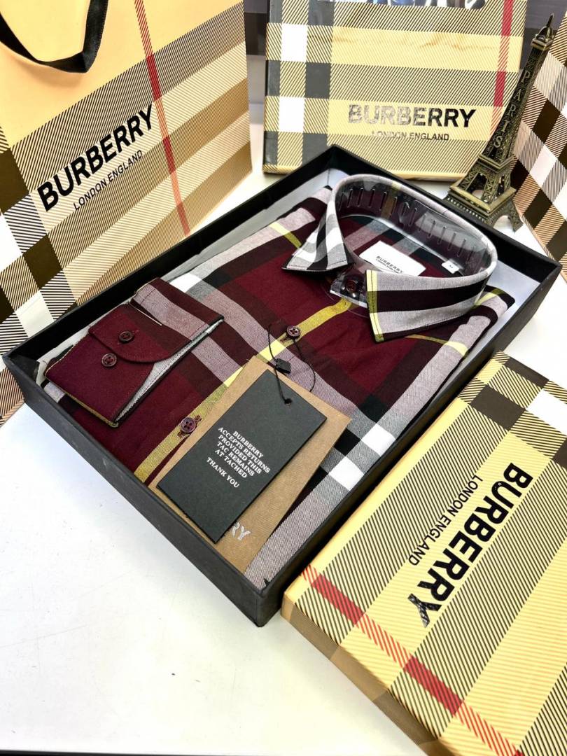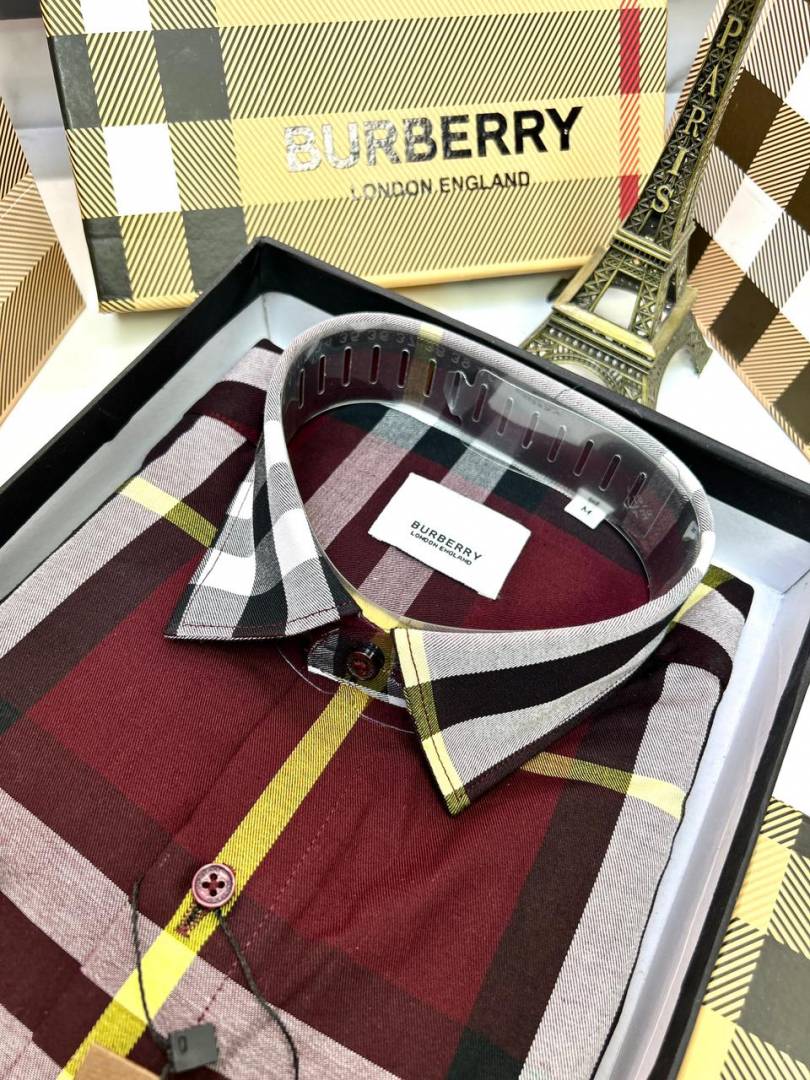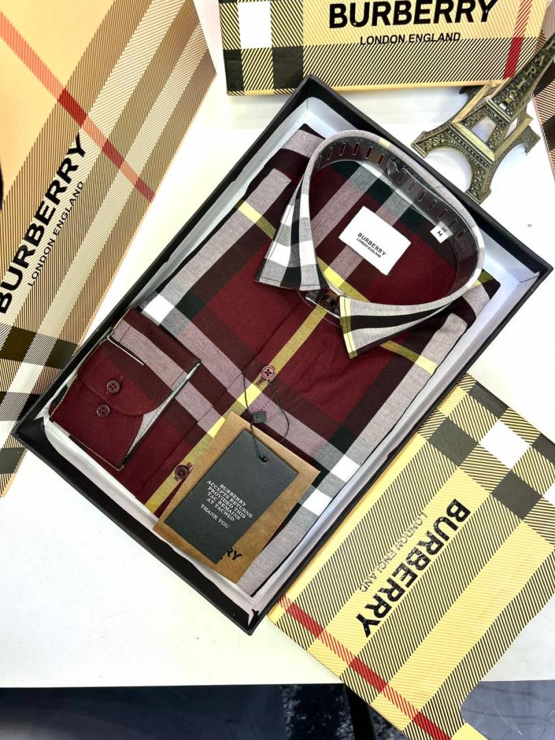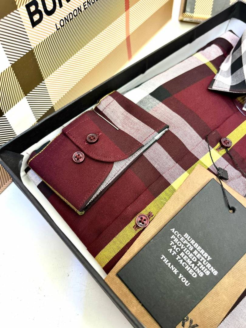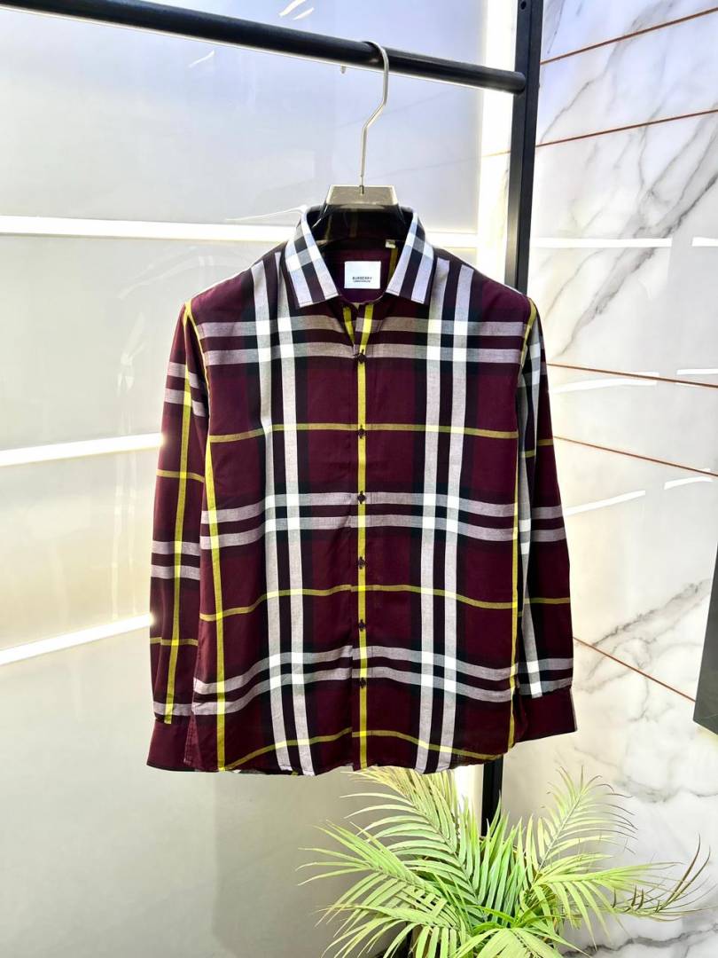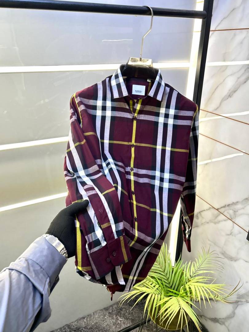 Burberr y Maroon Premium Checks Shirt With Brand Box Packing and Carry Bag F2981-MA
