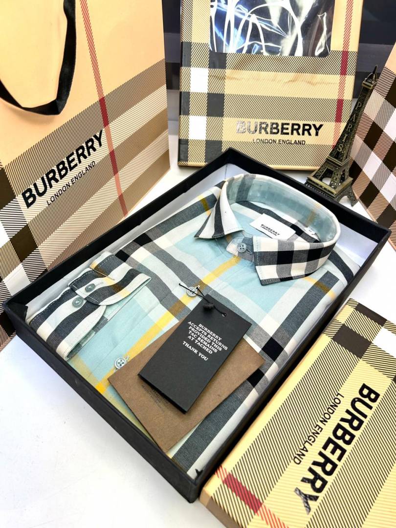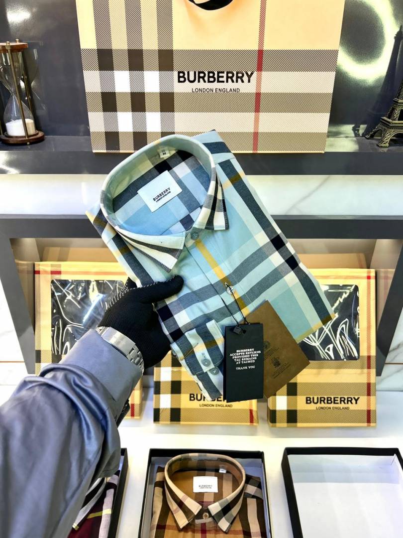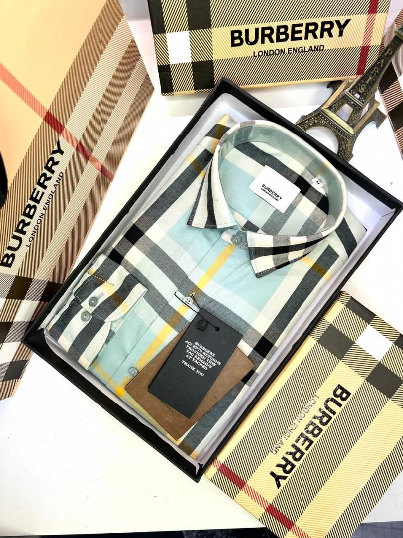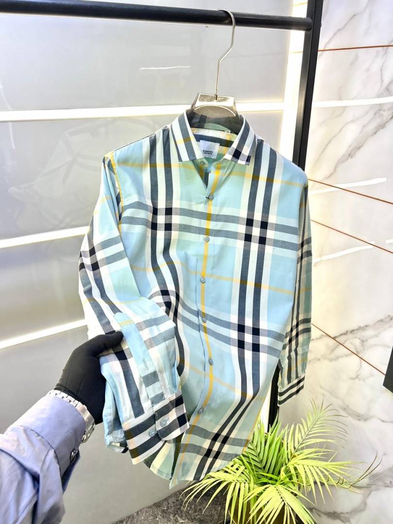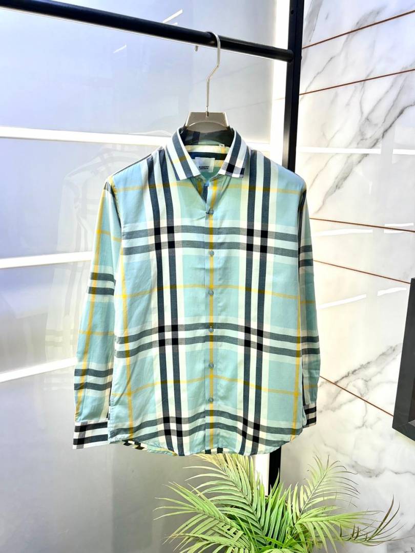 Burberr y Mint Premium Checks Shirt With Brand Box Packing and Carry Bag F2981-MI