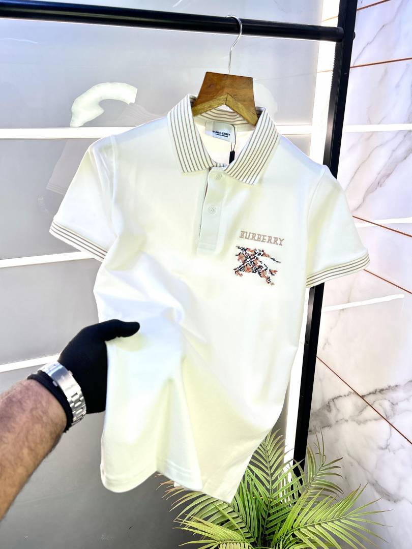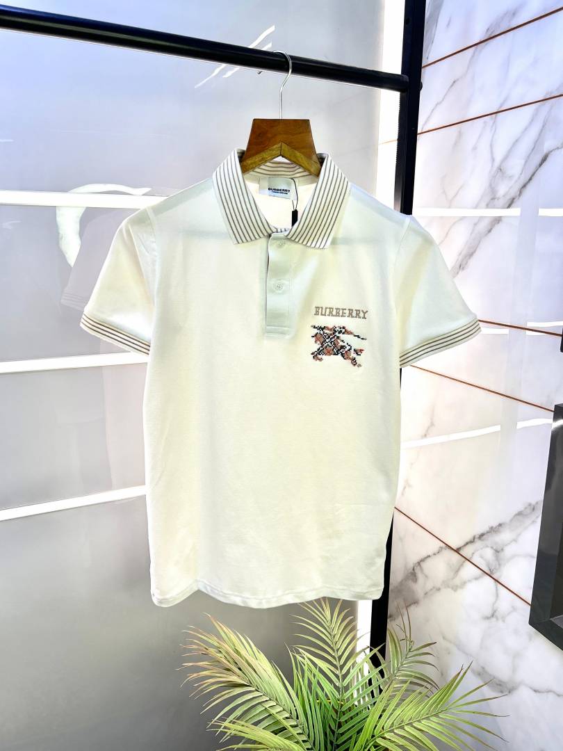 Burberr y White Polo Neck Premium Collar T-shirt F2910-W1