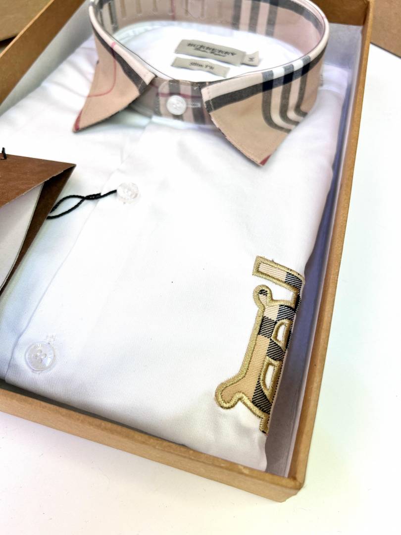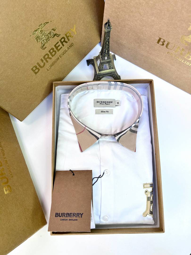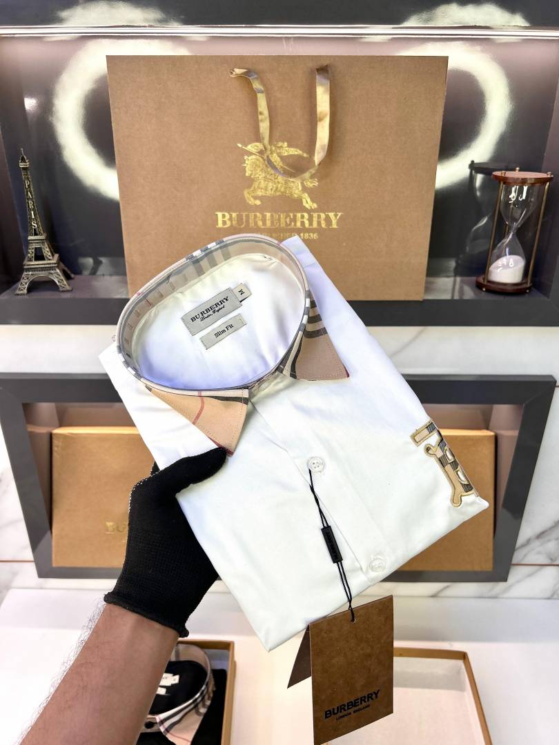 Burberr y White Premium Embroidery Logo Shirt With Brand Box Packing And Carry Bag F2249-WH