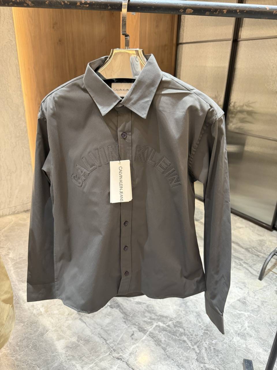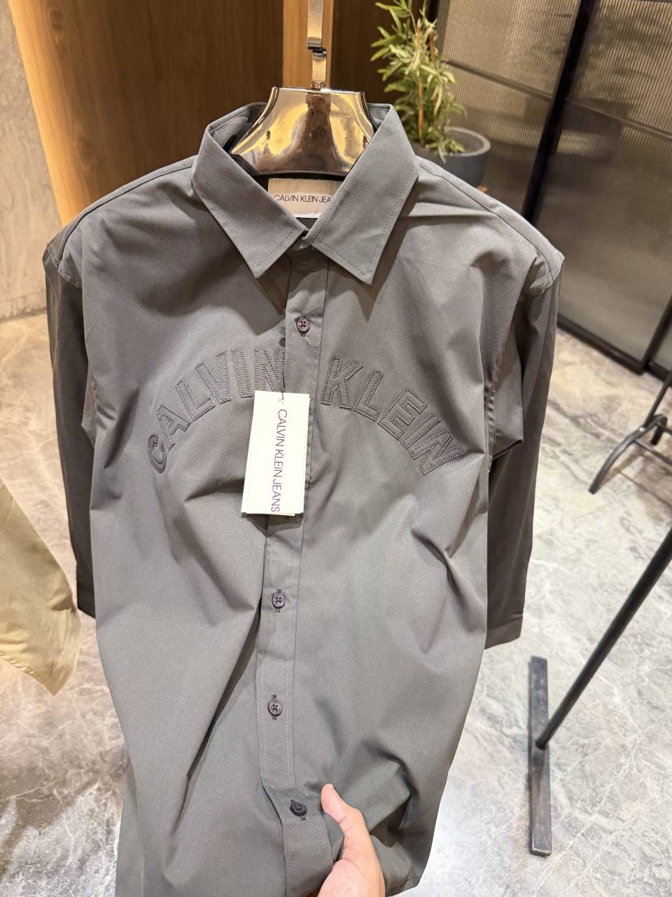 Calvin Klei n Dark Grey Brand embossed soft cotton shirt