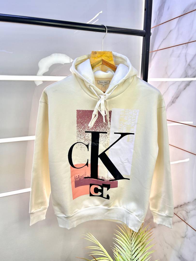 Calvin_Klein Imported Cream Printed Super Premium Hoodie F1343-CRE