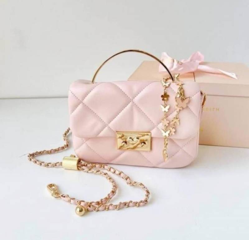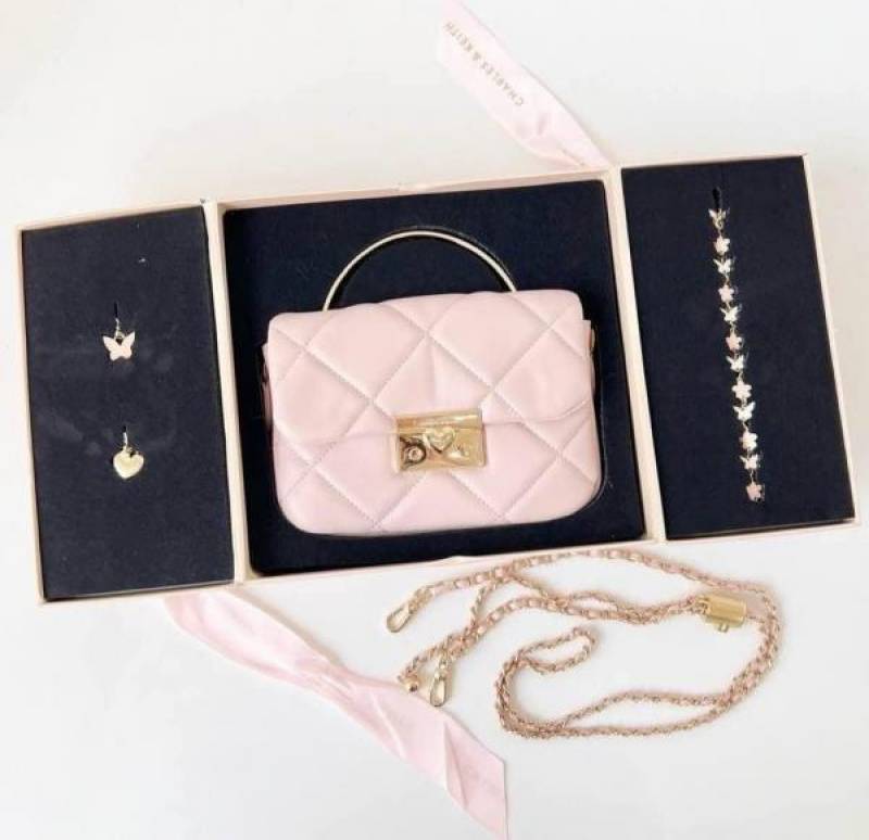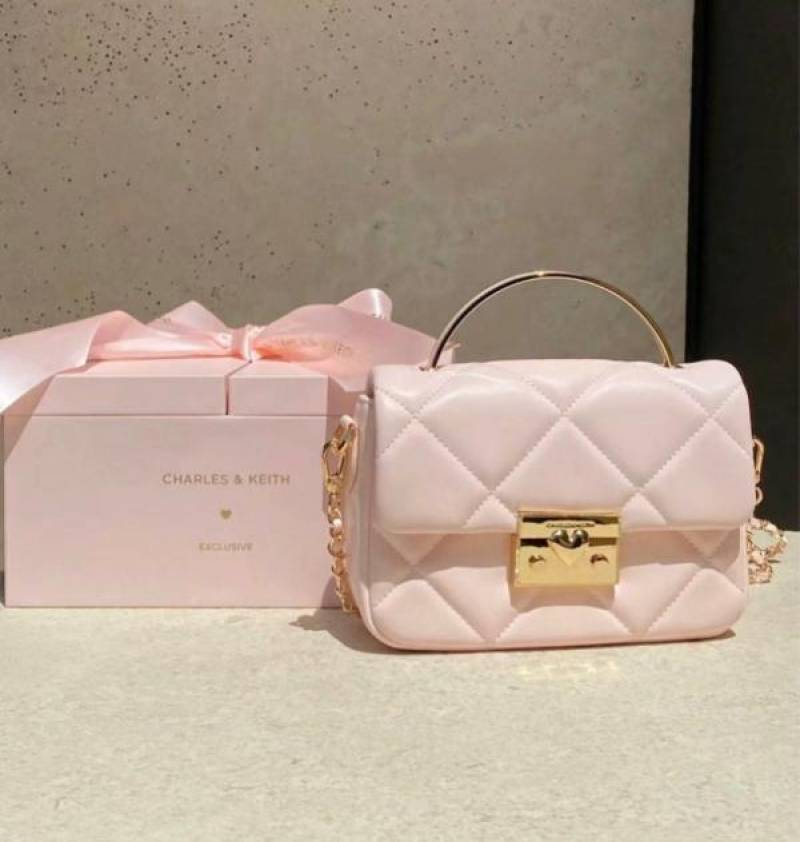 Charles & Keith Boxy Quilted Top Handle Bag Gift Set Slightly Damage Black Box (White)