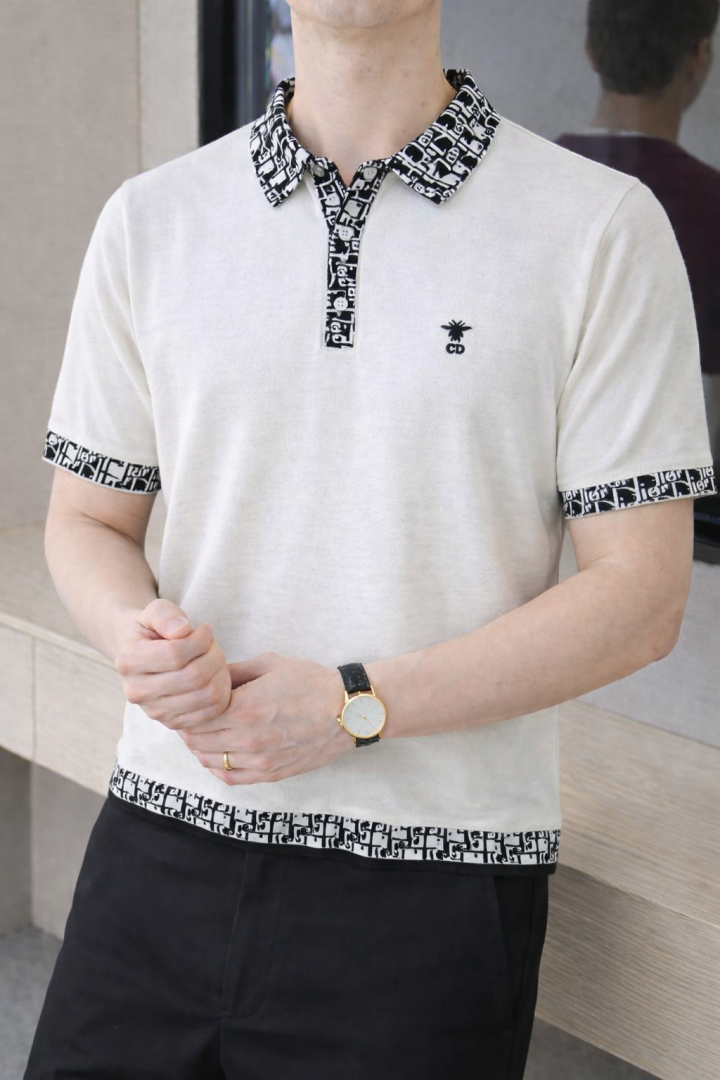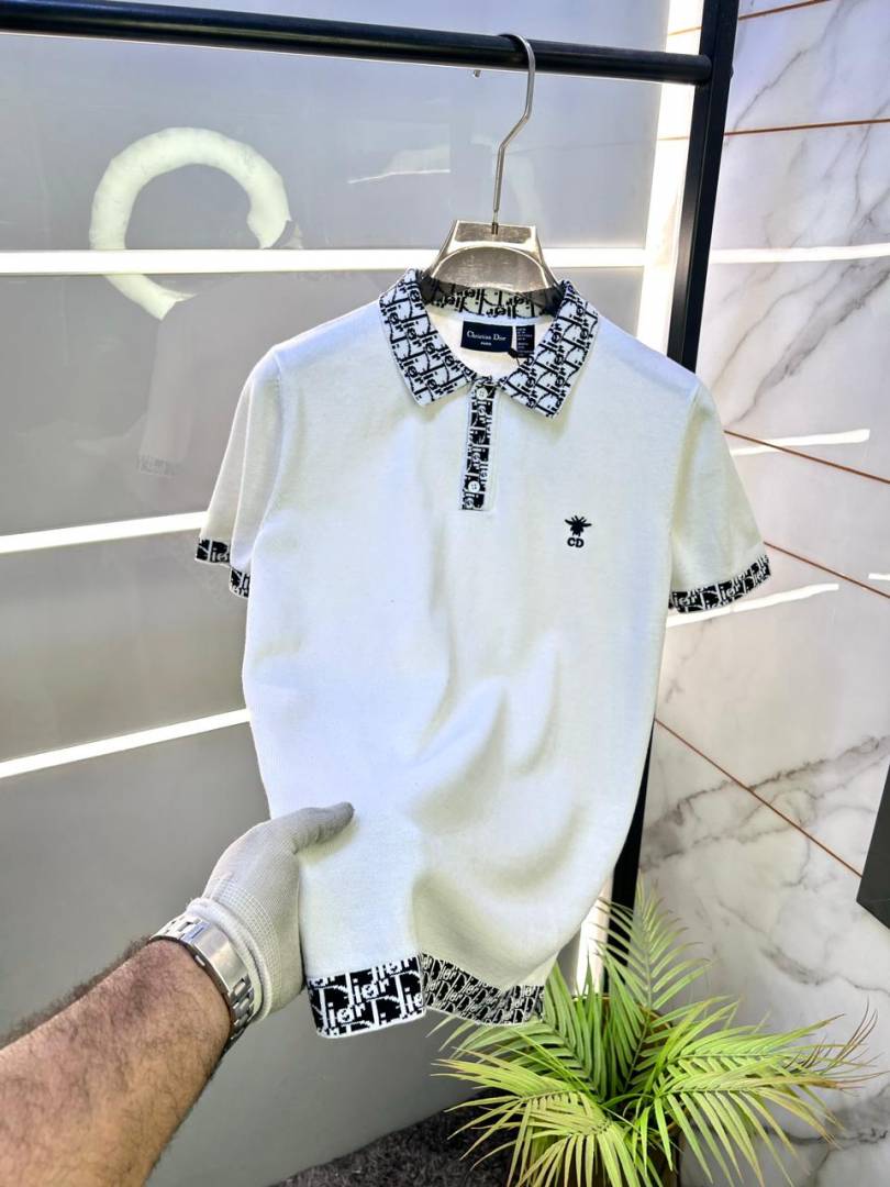Christian Dio r White Imported knitted Premium Collar Neck Polo T-shirt F3488-WH