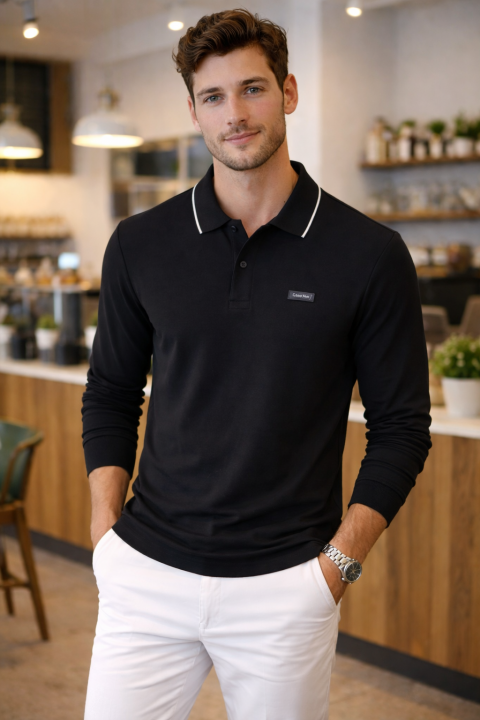 Gucc i Black Monogram Imported Polo Neck Premium Collar T-shirt F1856-BL